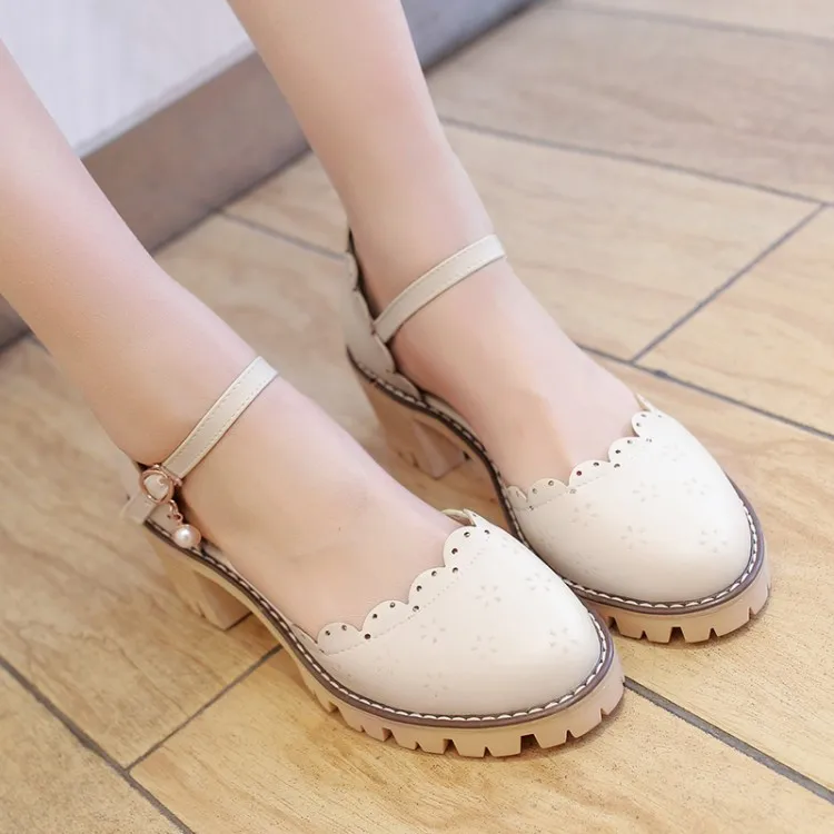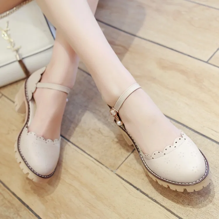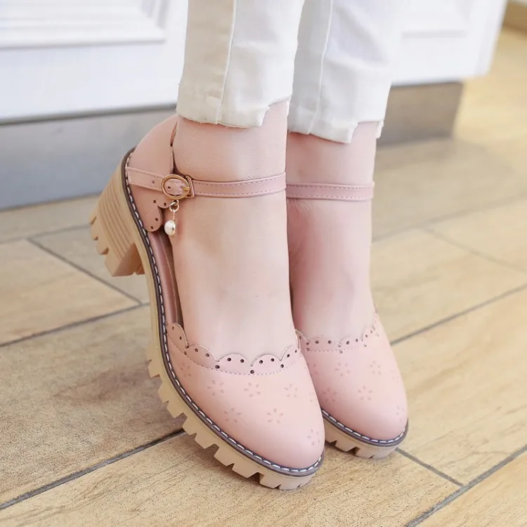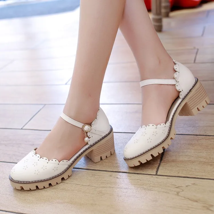 Женские туфли на высоком каблуке, туфли-лодочки большого размера с круглым носком и пряжкой