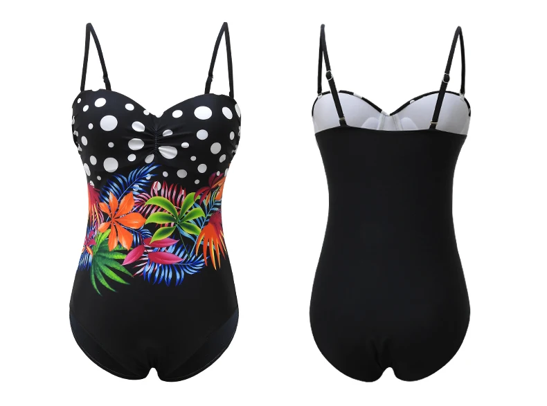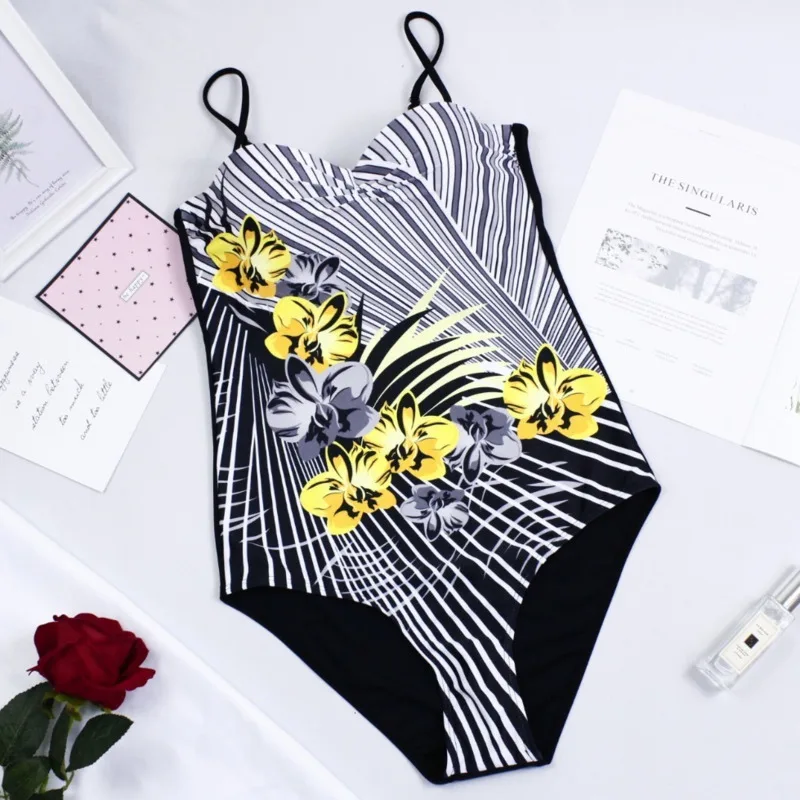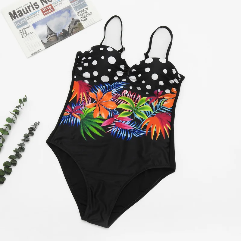 Женский сплошной купальный костюм с принтом, винтажный купальный костюм большого размера с эффектом пуш-ап и цветочным принтом для пляжа и бассейна, 2022