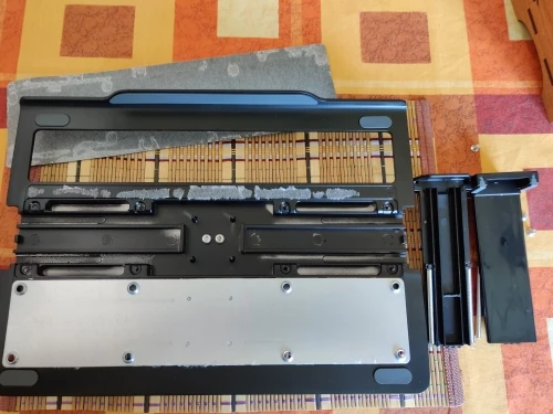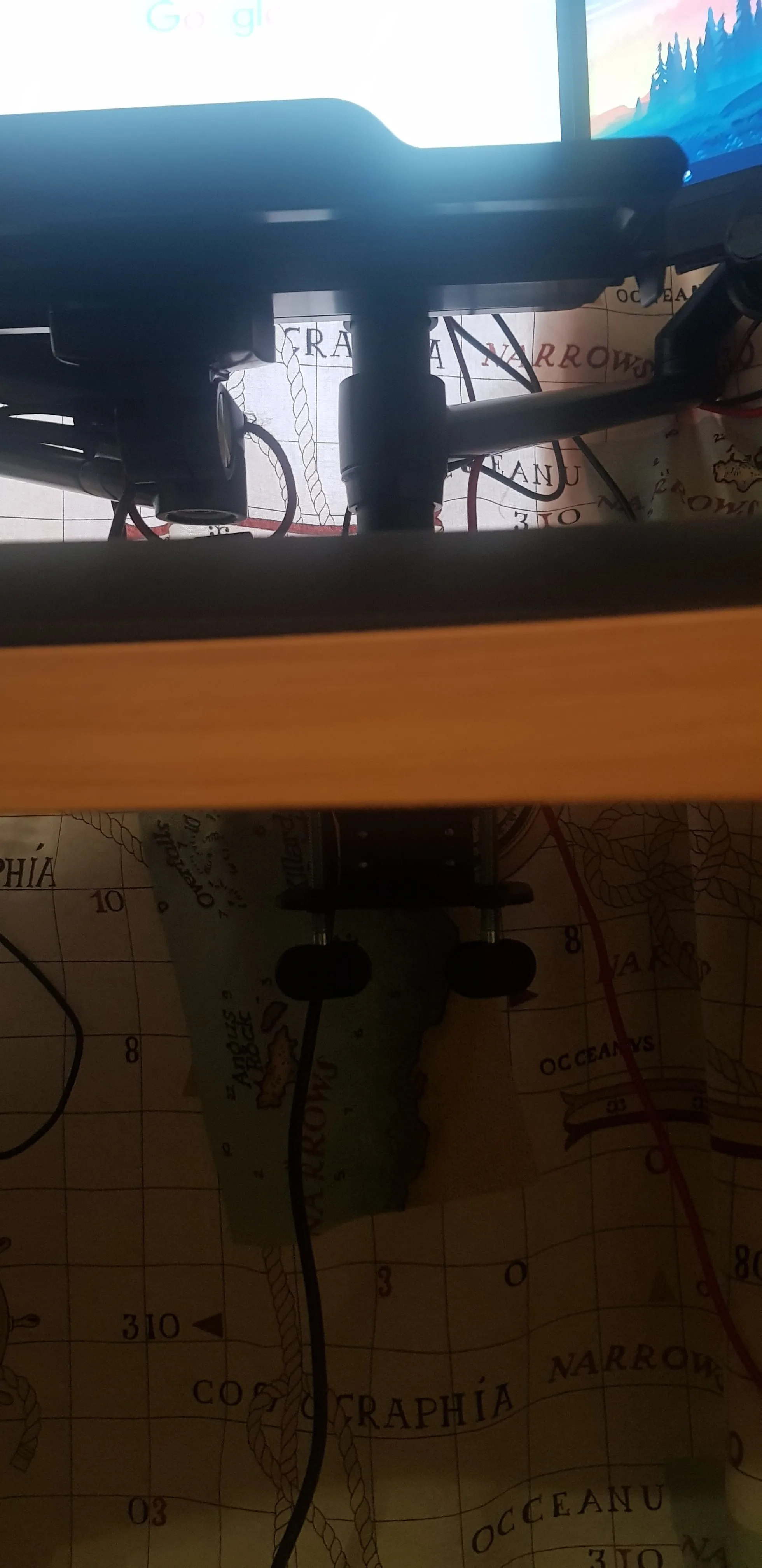 До сих пор так хорошо, ноутбук Dell 17 ", LG 24 монитор". Единственное, что в монтаже V это то, что он пришел ко мне Согнут центральный сервант (обеспечивает отверстия) хотя при установке основания, где он подходит, позволяет вращаться, и я был в состоянии полностью компенсировать наклон (см. Фото)
