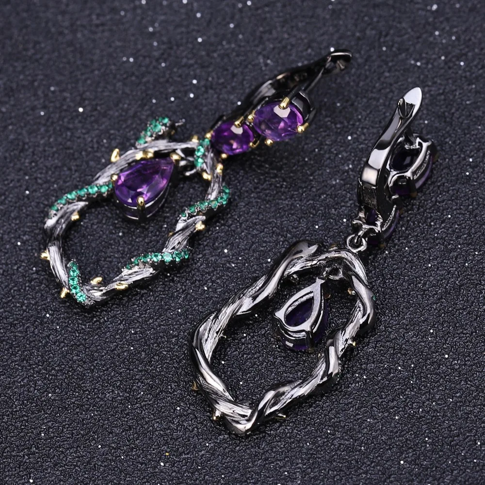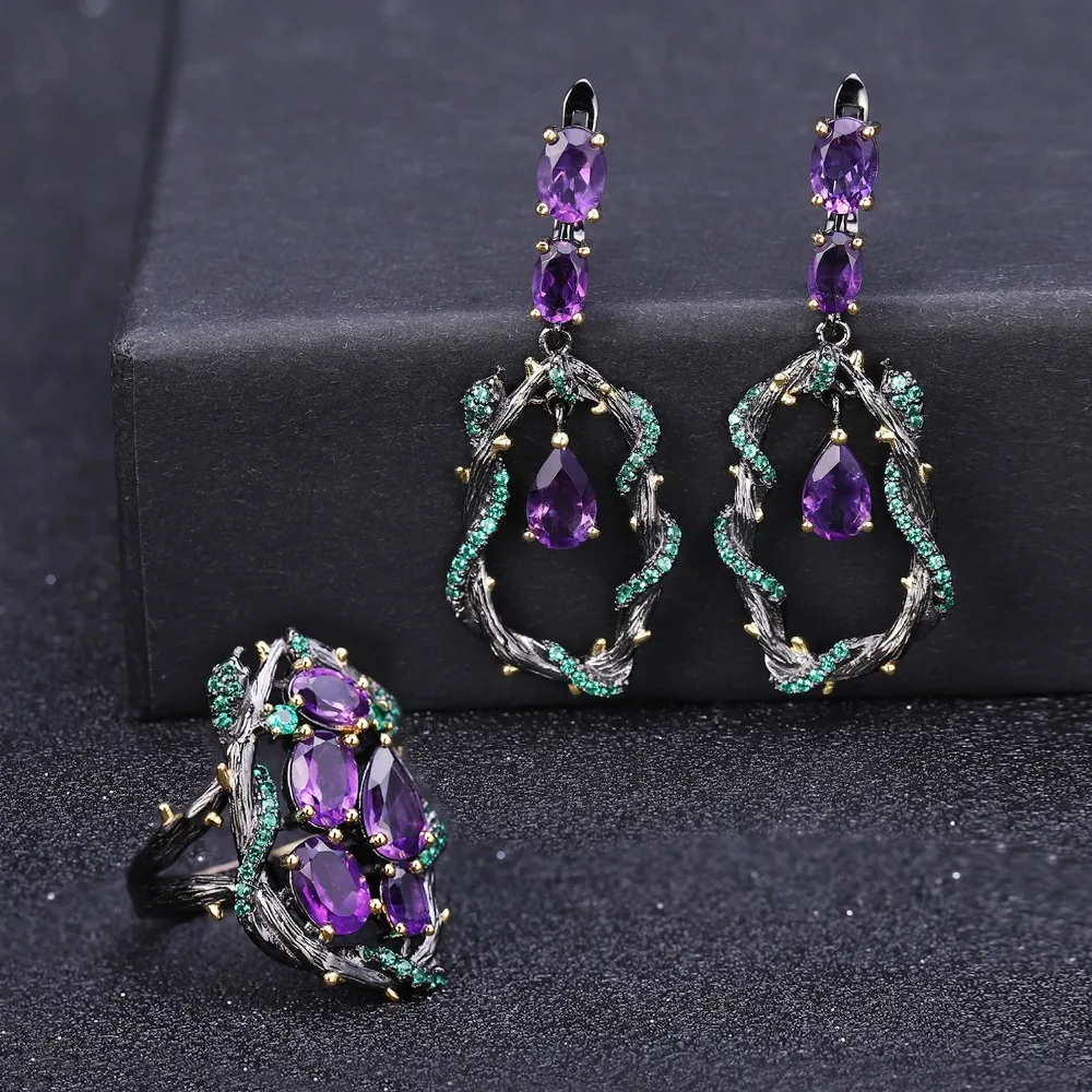 Набор сережек GEM'S BALLET из стерлингового серебра 925 пробы ручной работы 7.58Ct натуральный аметистовый драгоченный камень винтажный набор украшений для женщин