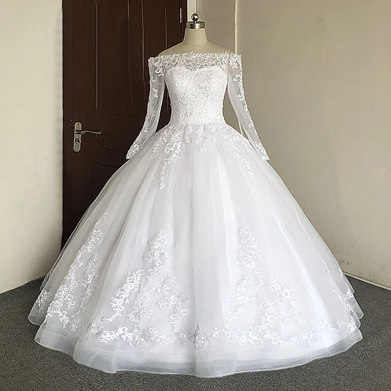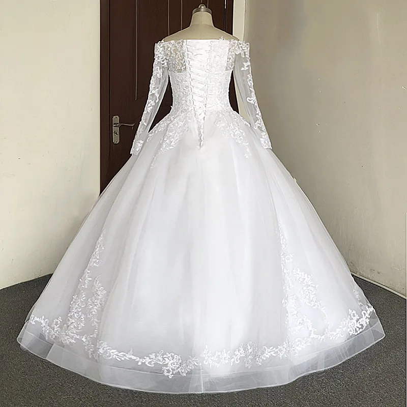 Белое Кружевное бальное платье JIERUIZE с открытыми плечами, свадебные платья с длинными рукавами, свадебные платья принцессы, robe mariage
