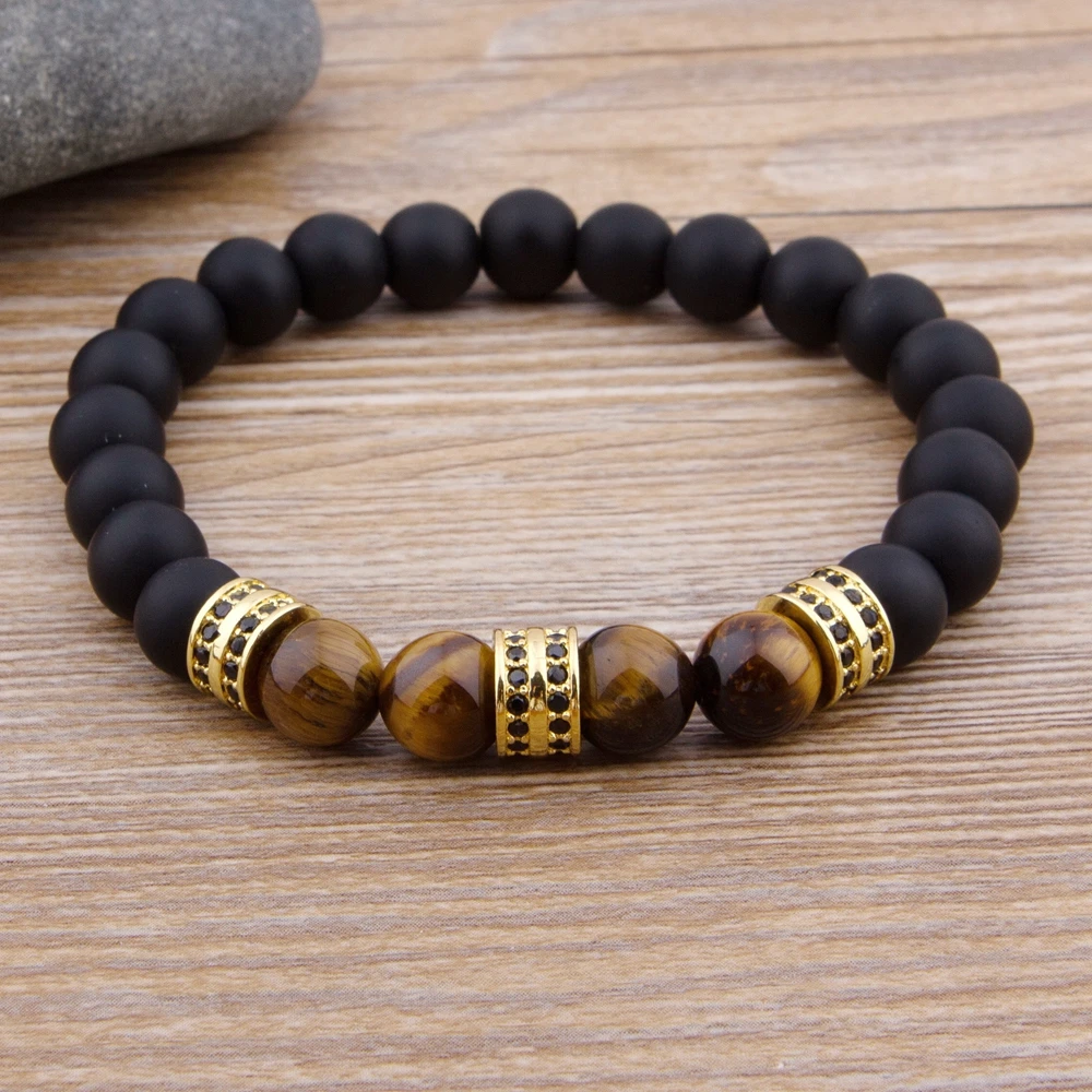 TYO Высокое качество блестящий CZ розовое золоточерныйЗолотойСеребряный цвет камень браслет из бисера DIY ручной работы для мужчин и женщин Ручные украшения аксессуары