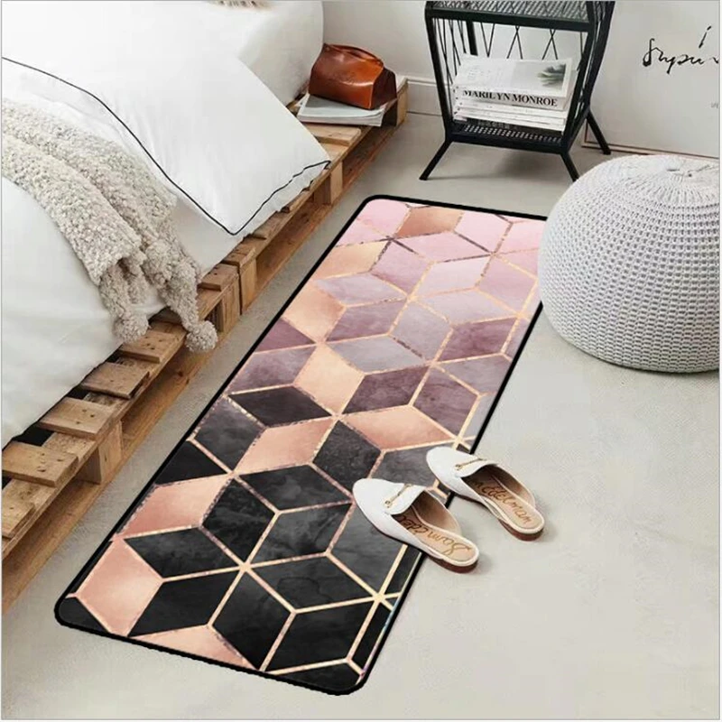 Длинное одеяло с абстрактной алмазной решеткой розового и черного цвета, кухонный коврик, коврик для входа, нескользящий коврик, прикроватное одеяло для спальни, искусственные Коврики для спальни