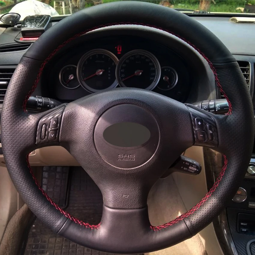 Черная искусственная кожа, прошитая вручную чехол рулевого колеса автомобиля для Subaru Forester 2004-2007 Outback Legacy Impreza WRX 2003-2006