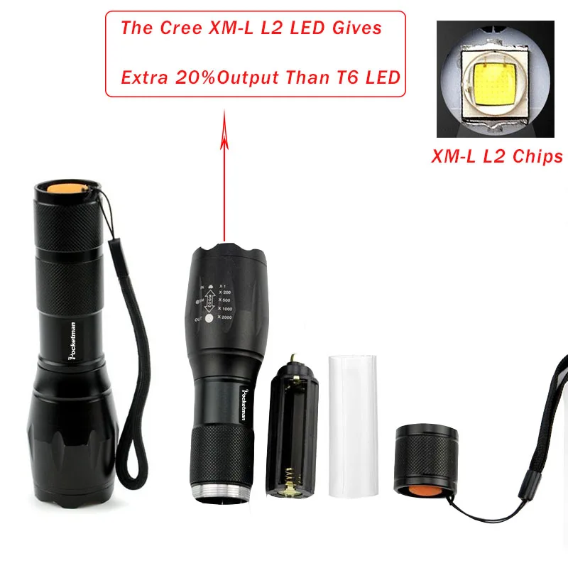 О светодиодный фонарик:Этот высококачественный водостойкий светодиодный фонарик/фонарь с диммером, 6000LM/8000LM/12000 лм, регулировка телескопической головки; Кнопка всегда работает в режиме тумблера, И вы можете быстро переключиться с помощью полунажатия кнопки.