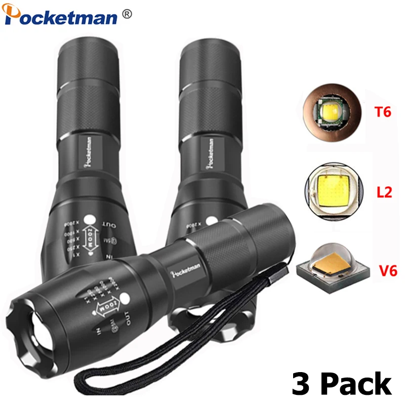 •Название модели:A100 фонарик•Количество:1/2/3 шт•Светодиодный источник света:T6 6000LM L2 8000LM V6 12000LM•Режим:5 режимов (высокий, средний, низкий, сигнал SOS)•(Чип на плате) Срок службы:100000 часов•Цвет:Черный•Излучаемый Цвет:Белый светильник•Объектив:Выпуклая линза•Материал корпуса:Долговечный авиационный алюминий•Батарея:1x18650 / 3 x AAA (не входит в комплект)