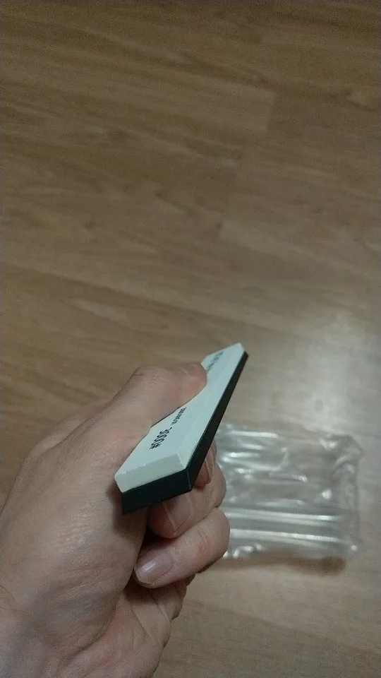 камень хорошего качества. но, он предназначен для машинки или приспособления для заточки. в руке держать неудобно. буду что то думать, как крепить. для ручной заточки не пойдет- не безопастно.