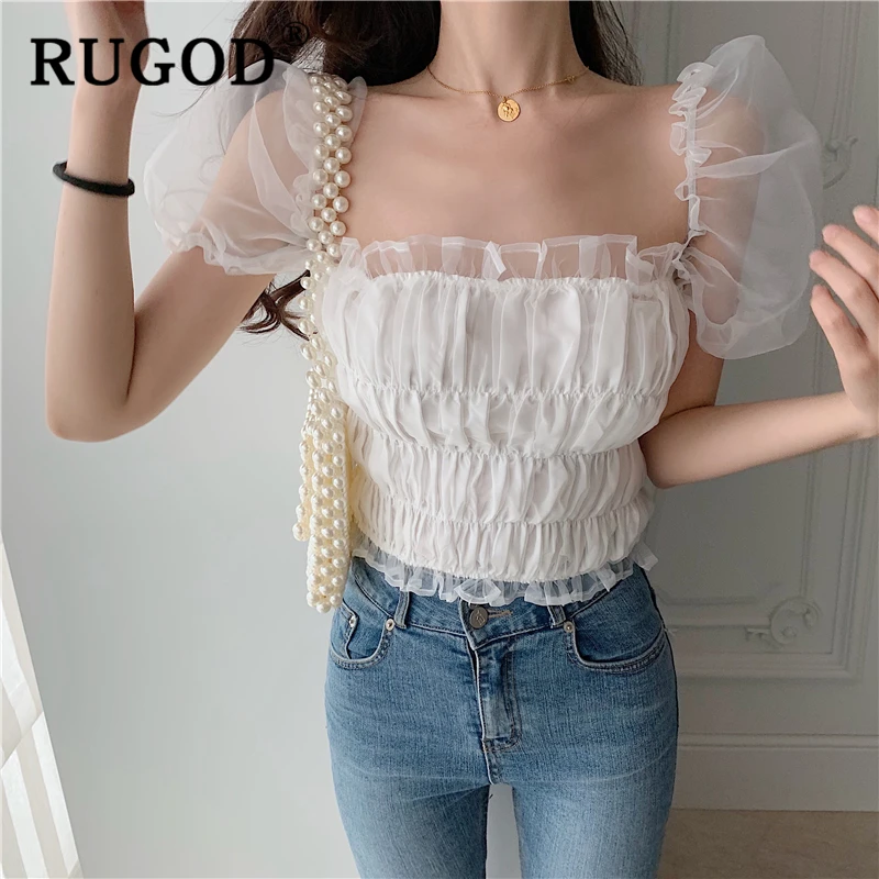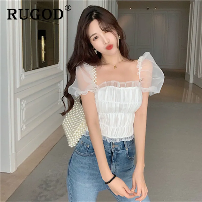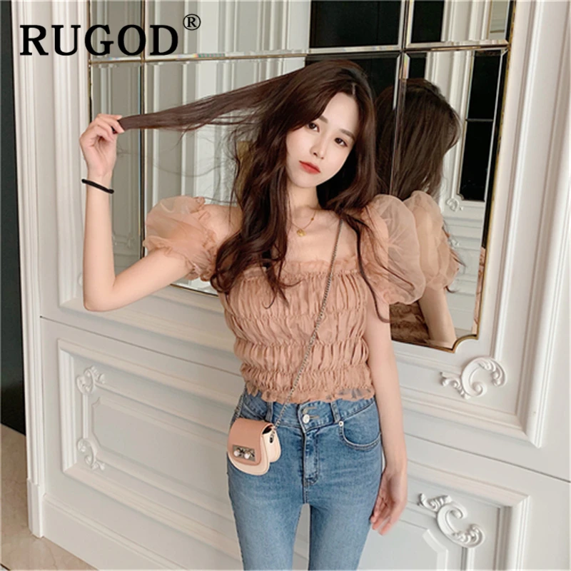 RUGODшифоновые шикарные модные топы на шнуровке с пышными рукавами, универсальная базовая Осенняя рубашка, повседневные модные блузки на осень 2020