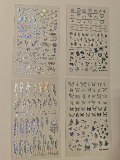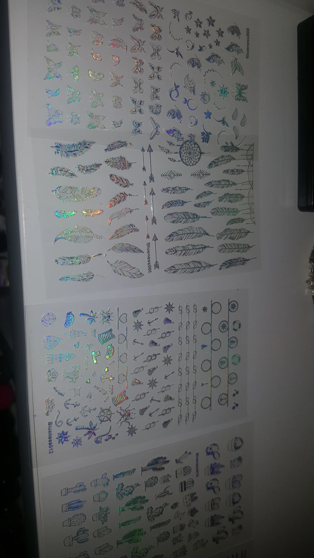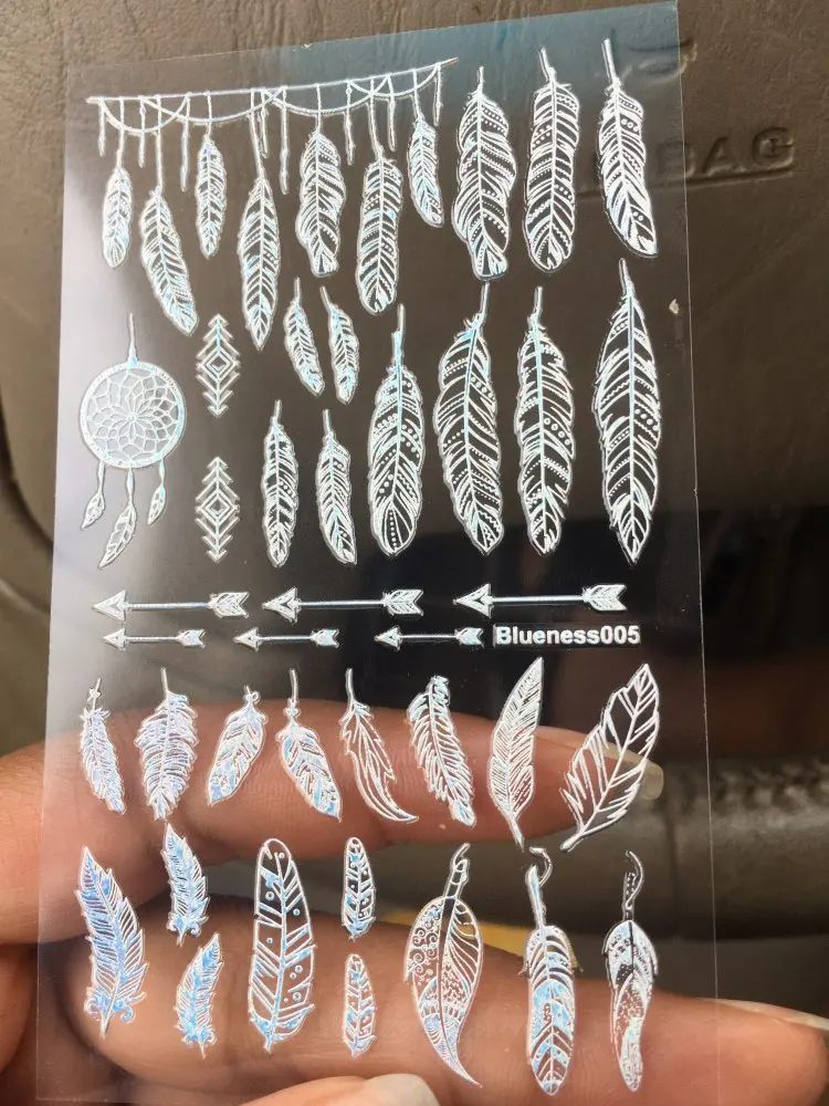 отличные наклейки, рекомендую, все подходят для коротких ногтей, есть две для длинных, ловец снов и перья. все Ок. буду заказывать ещё. Понравились