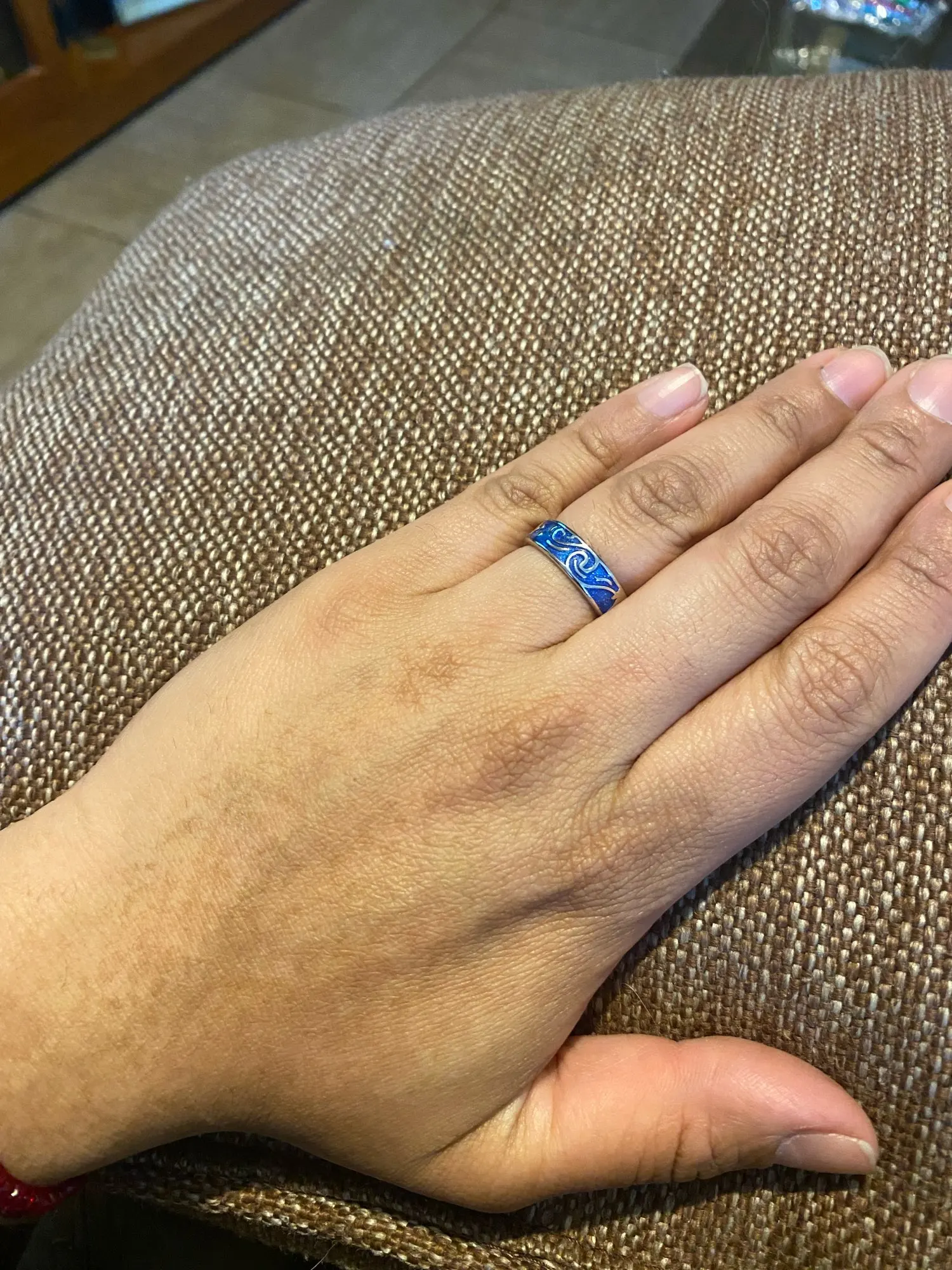 Кольцо красивое, имеет марку 925; Тем не менее, фон не темно-синий в целом, у него много блеска.