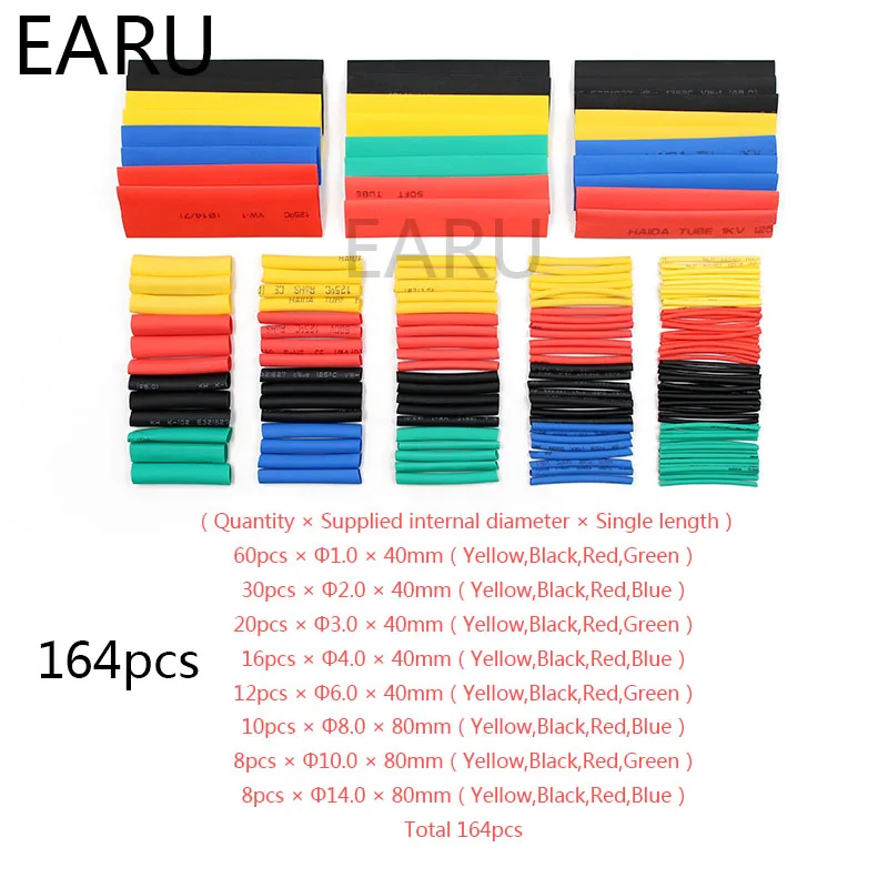 164 шт набор Полиолефиновая усадка Ассорти термоусадочная трубка провод кабель изолированный комплект трубок