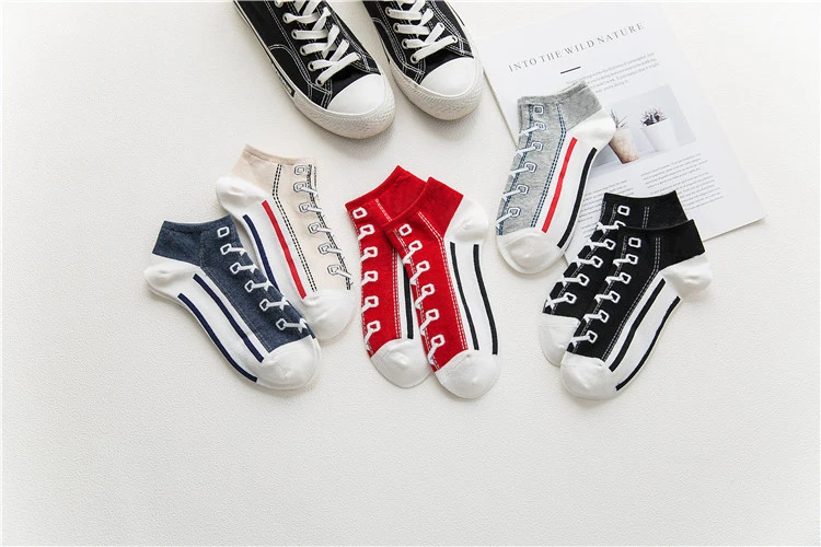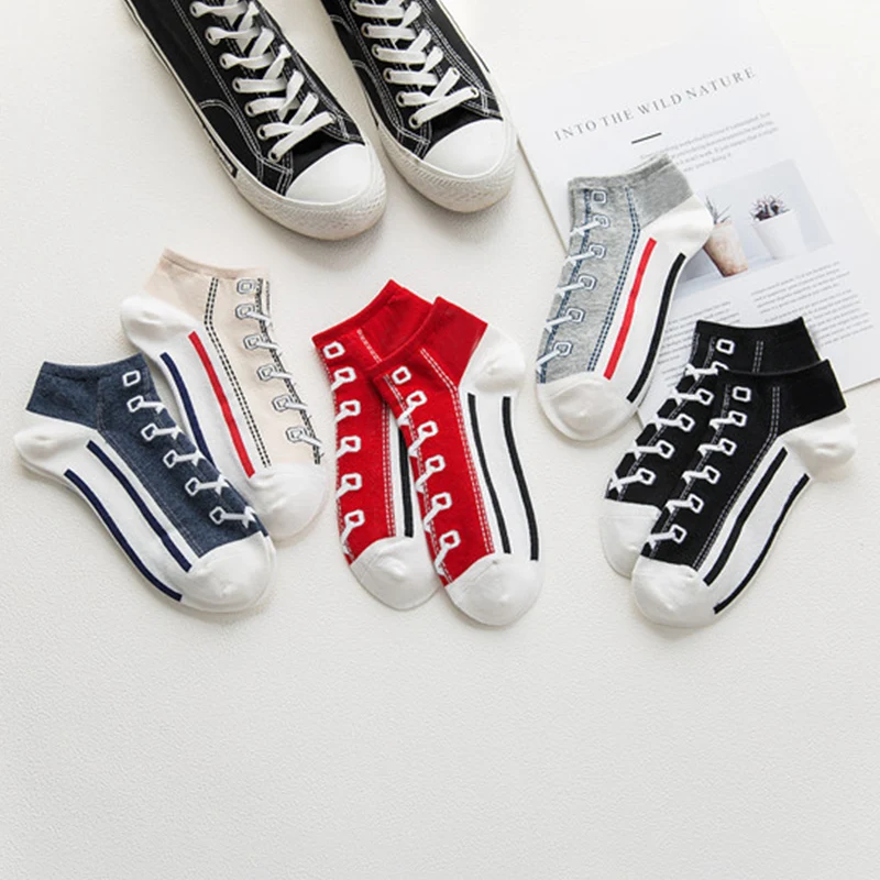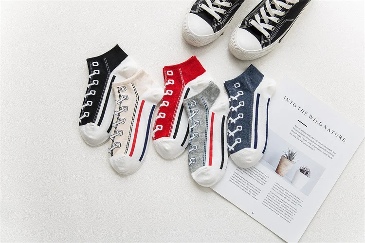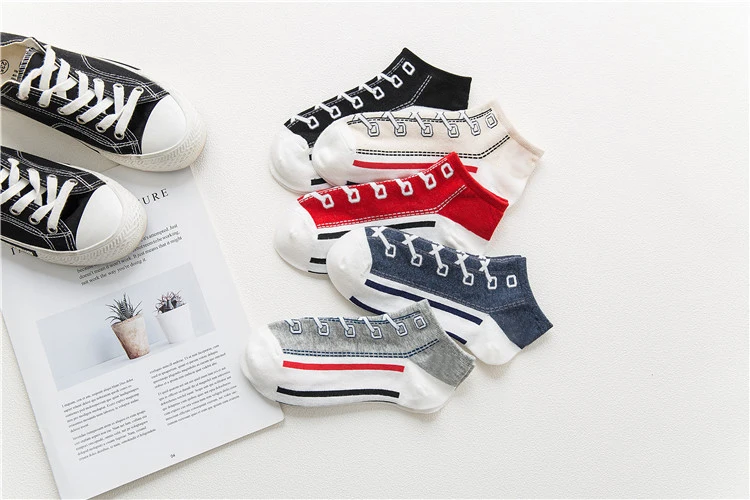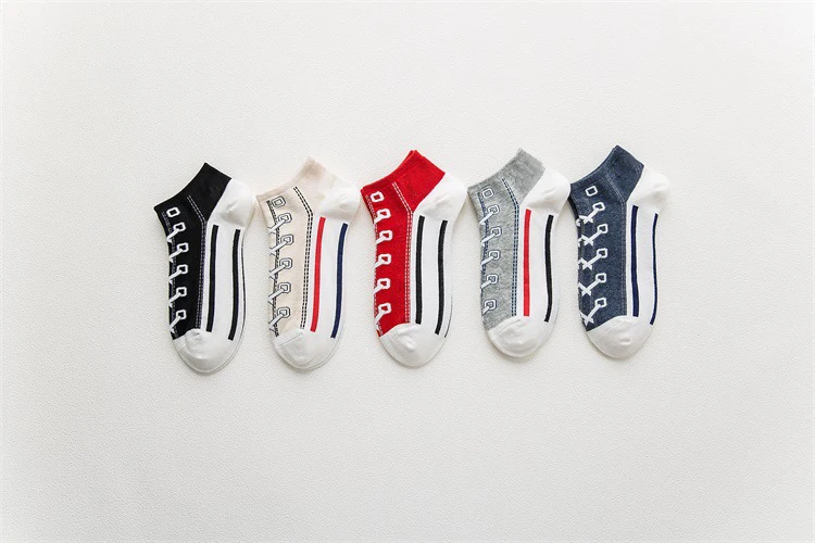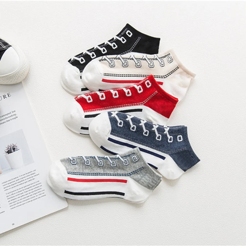 Носки женскиемужские короткие до щиколотки, повседневные Мягкие, с рисунком, 5 партЛот, стиль Харадзюку