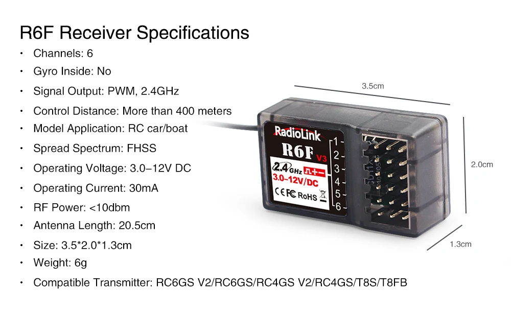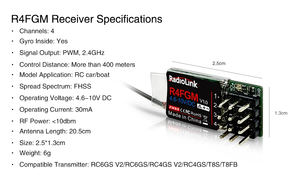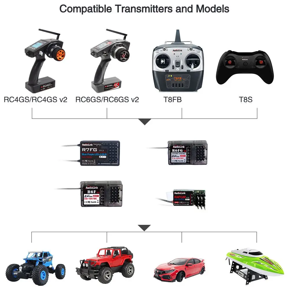 Совместимый передатчик: Radiolink RC4GS/RC6GS/RC6GS V2/RC4GS V2/T8S/T8FB