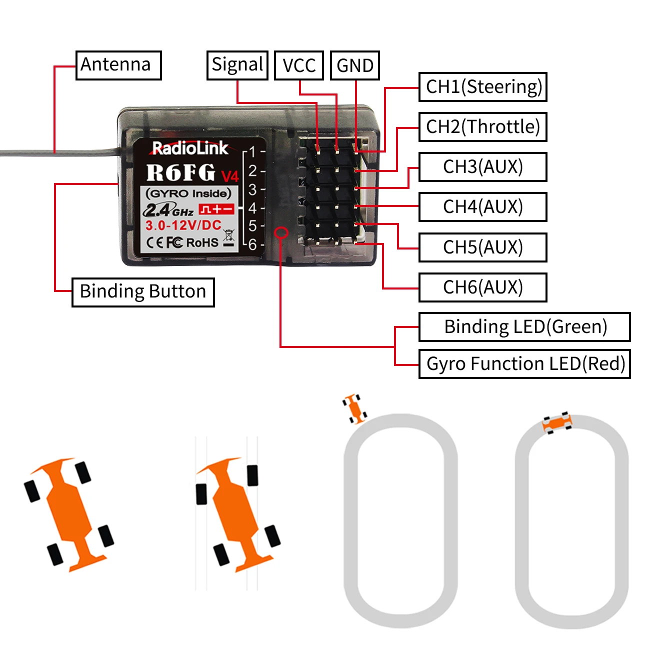 【6 Каналы 】: 6 Каналы приемник подходит для Radiolink передатчик RC4GS/RC4GS V2/RC6GS.RC6GS V2/RC4G/T8FB/T8S