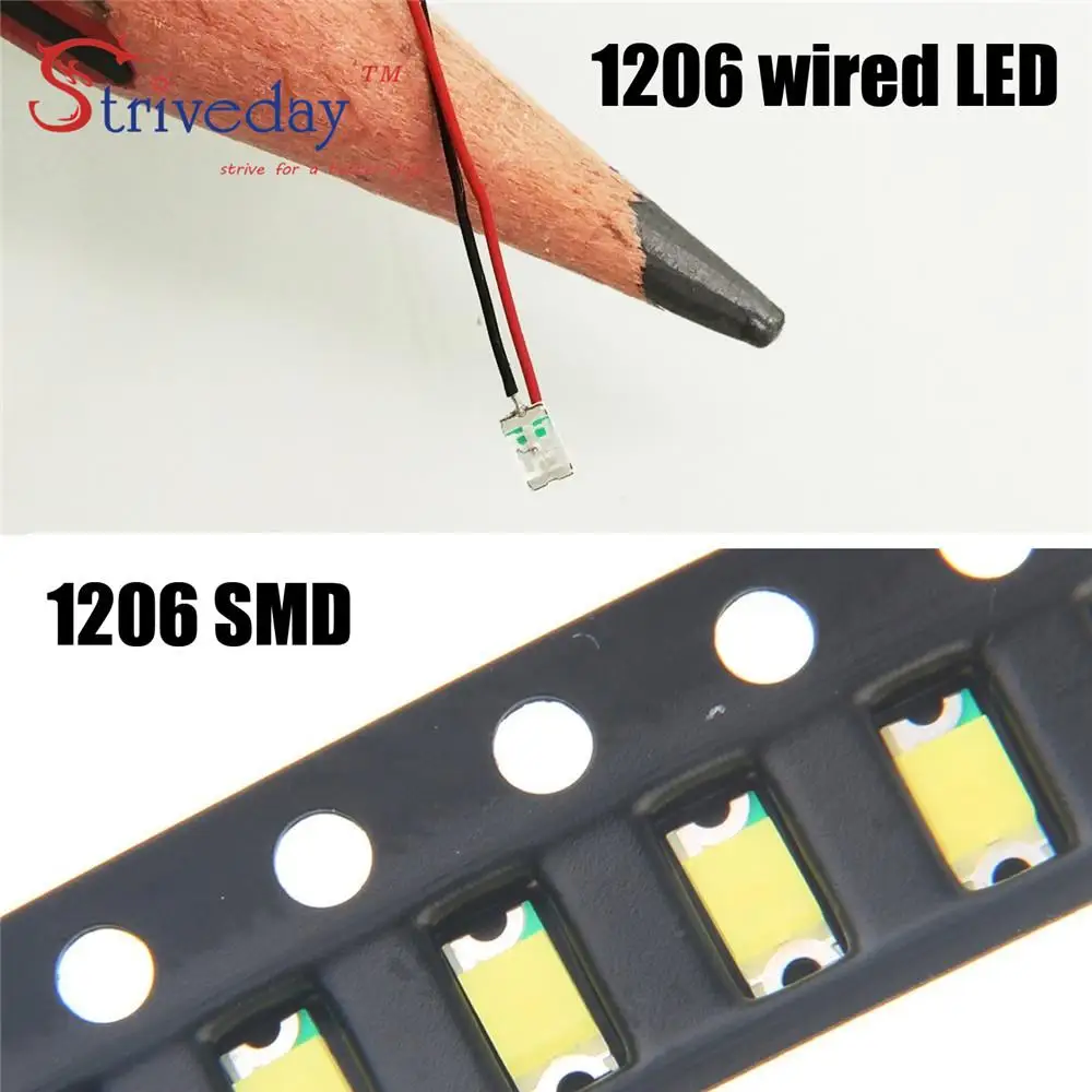 50 шт 8 В-12 В 1206 предварительно припаянный Micro Litz SMD LED Пр...