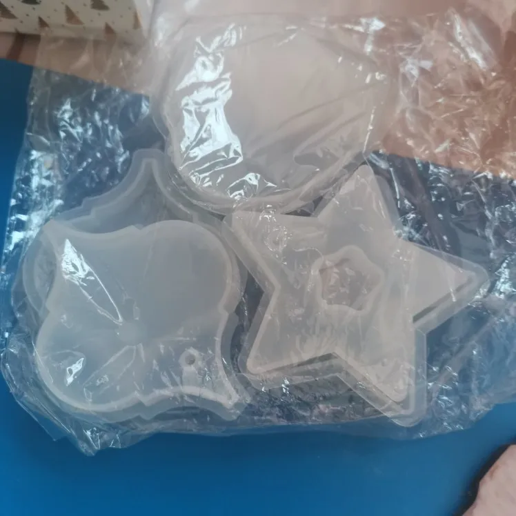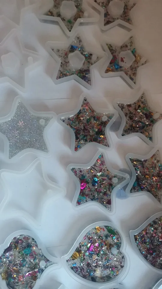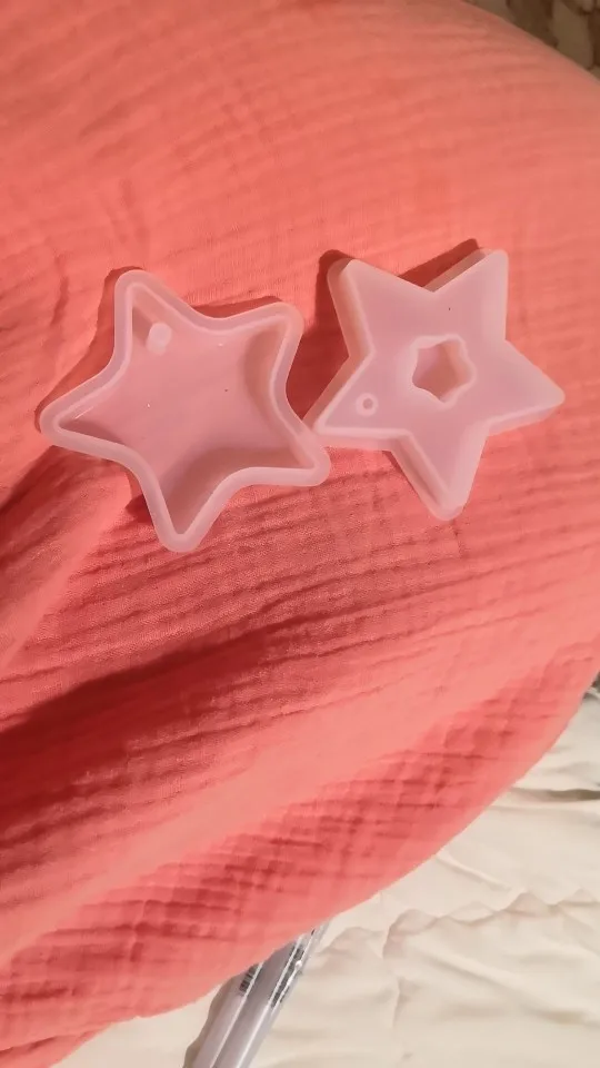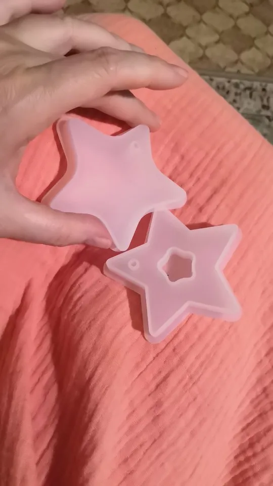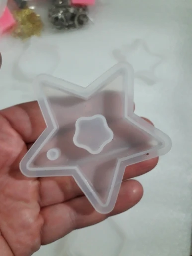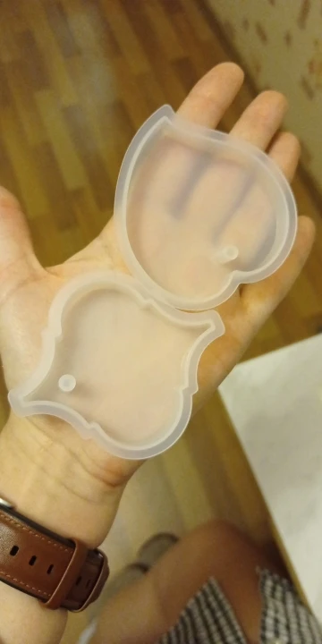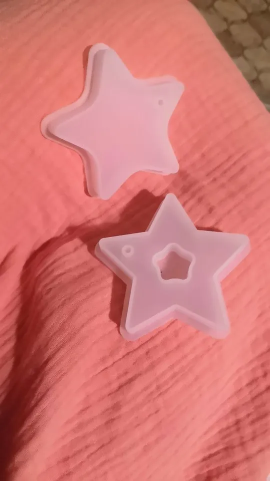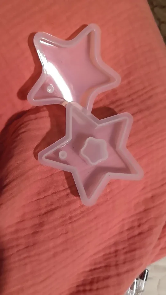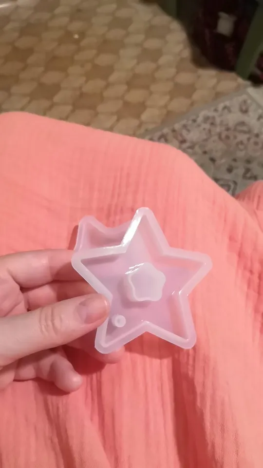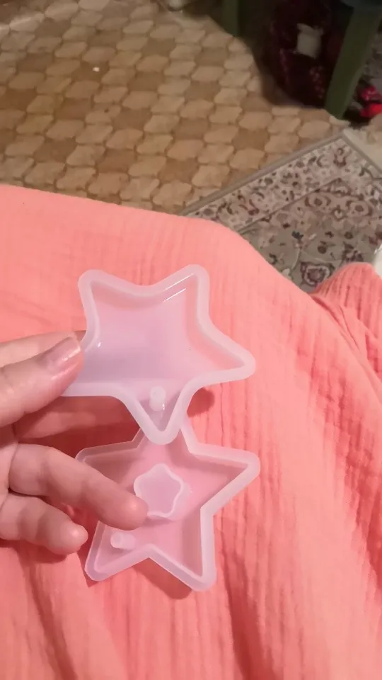 Когда молд пришел - обрадовалась. Силикон плотный, всё классно. НО! На второй заливке эпоксидной смолы молд прилип намертво! не по всему периметру, а только местами у самого верха. для того чтобы вытащить звезду из молда, пришлось срезать ножом. Естественно, молд теперь недостаточно ровный. Причину не выяснила, но обидно, конечно, на этот молд были большие планы.