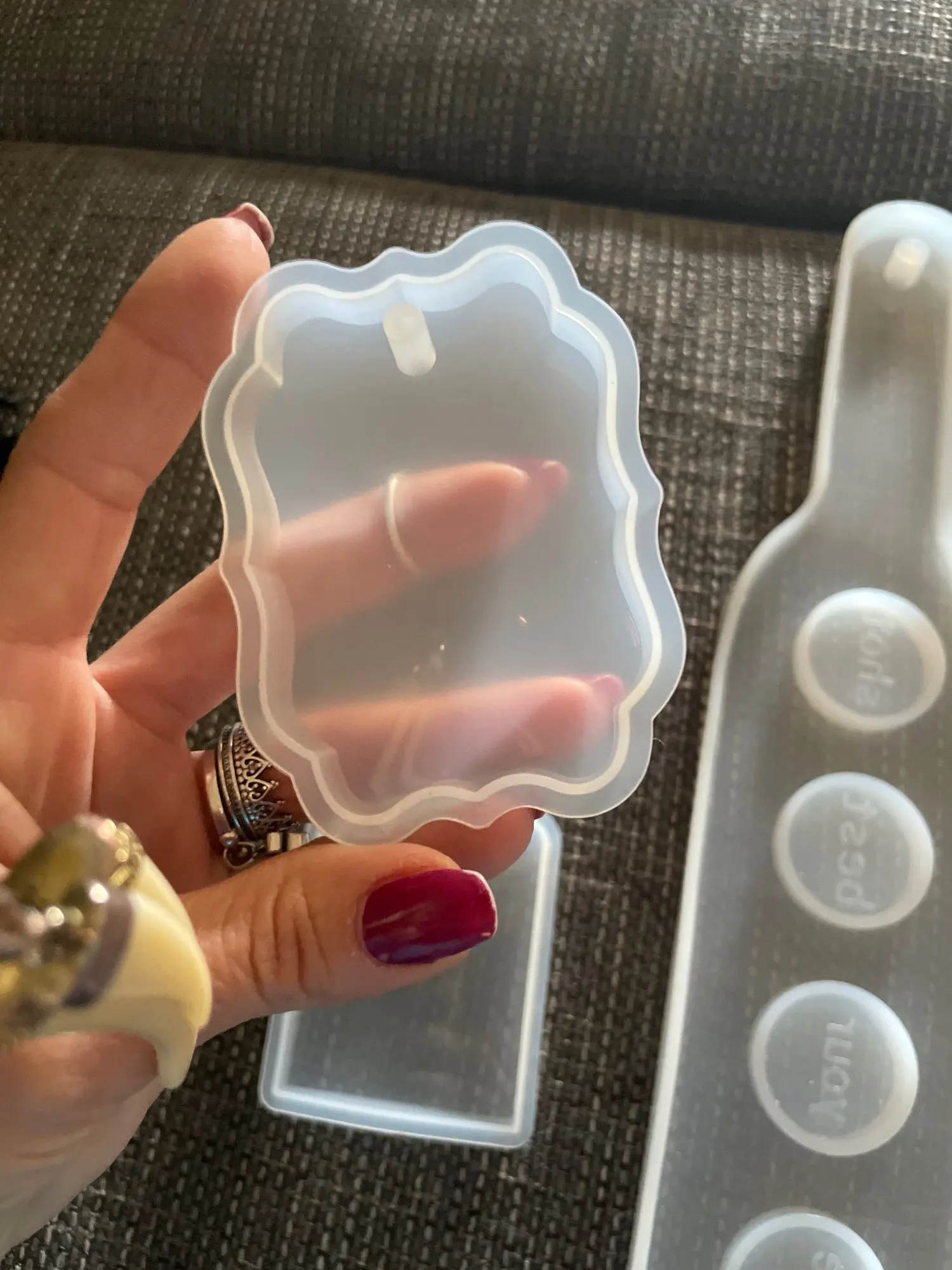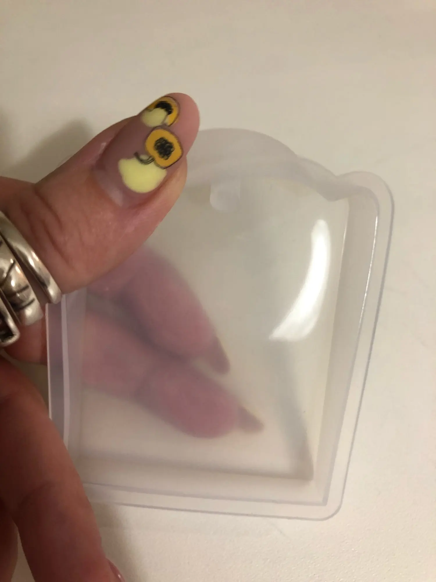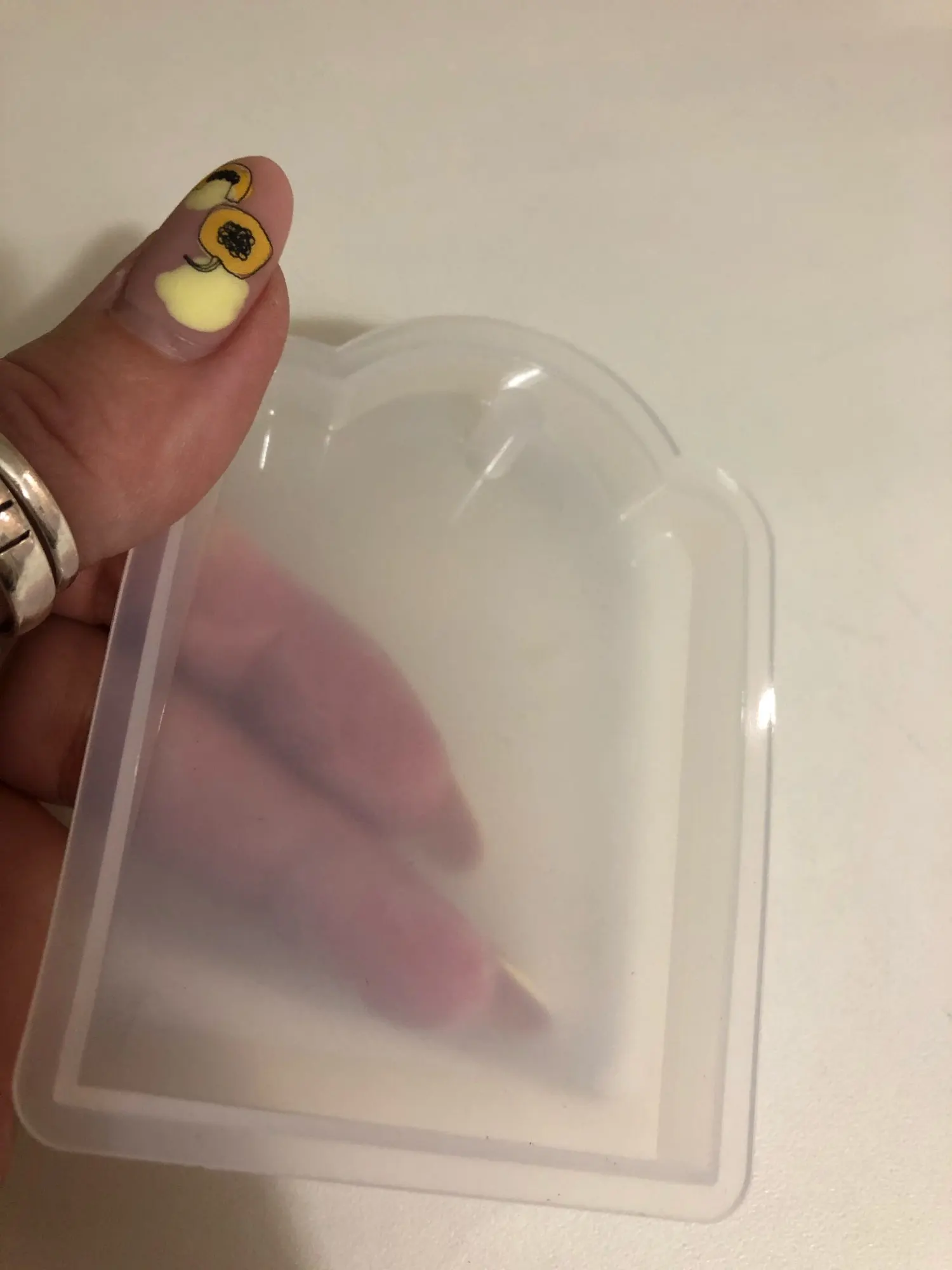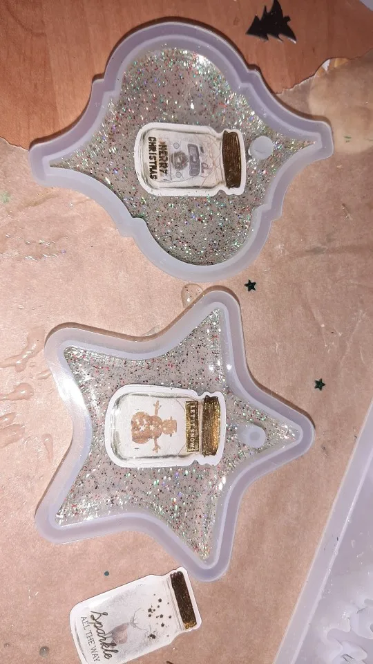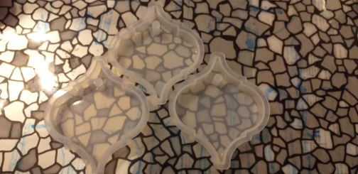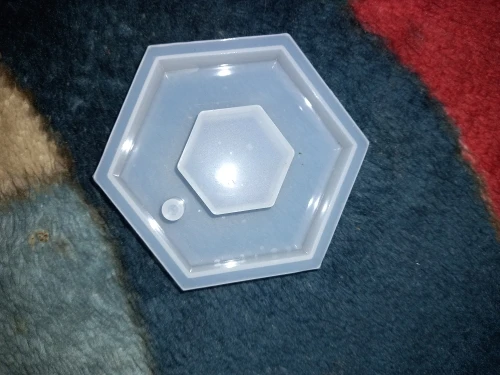 Когда молд пришел - обрадовалась. Силикон плотный, всё классно. НО! На второй заливке эпоксидной смолы молд прилип намертво! не по всему периметру, а только местами у самого верха. для того чтобы вытащить звезду из молда, пришлось срезать ножом. Естественно, молд теперь недостаточно ровный. Причину не выяснила, но обидно, конечно, на этот молд были большие планы.