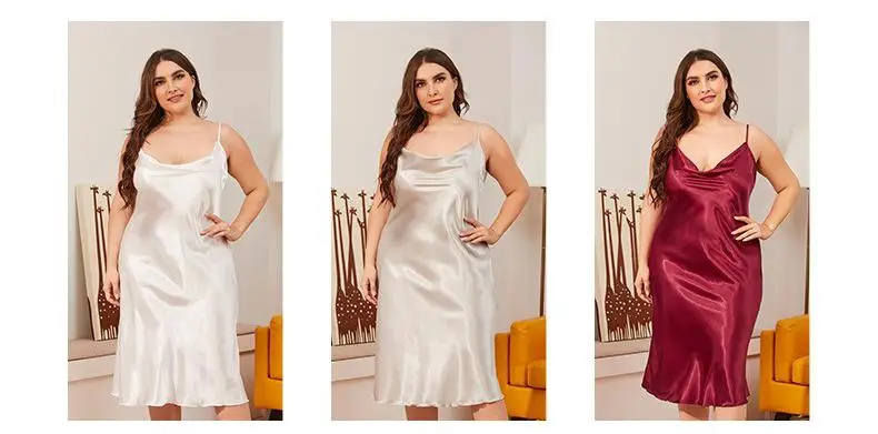 Сексуальная женская ночная рубашка на бретелях-спагетти, ночная сорочка большого размера, шелковистая атласная, интимное белье, домашняя одежда, одежда для сна, женская одежда
