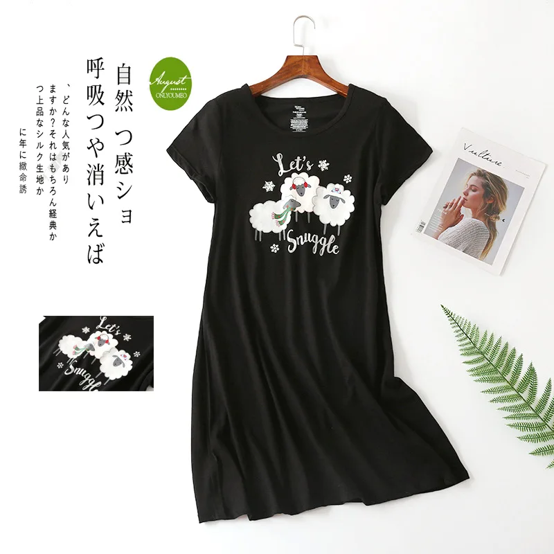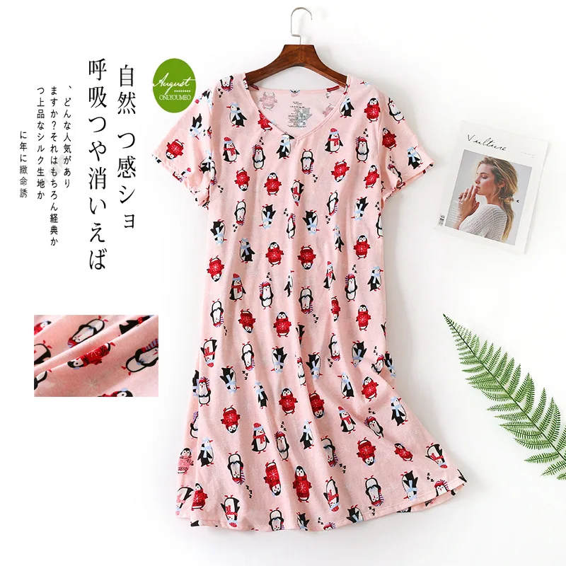 Летняя Высококачественная женская рубашка для сна 3xl, женская мягкая хлопковая ночная рубашка, женское платье для сна с коротким рукавом и круглым вырезом