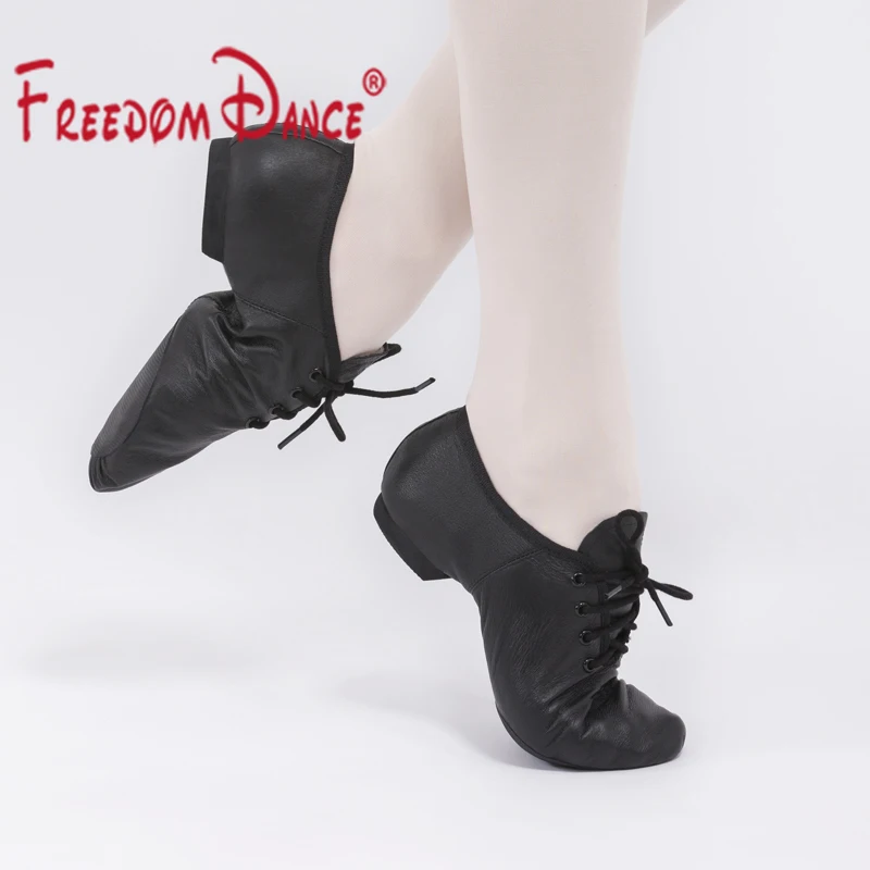 Джазовые танцевальные туфли из натуральной кожи на шнуровке для мужчин и женщин, мягкие балетные кроссовки для йоги, хип-хопа, танцевальные кроссовки, черные, коричневые, белые