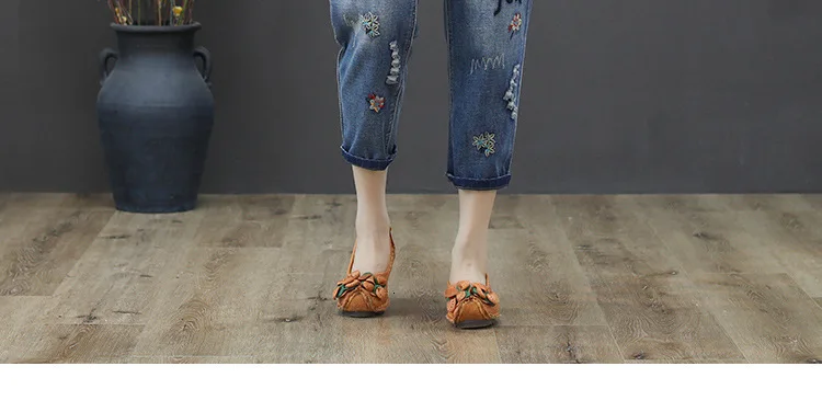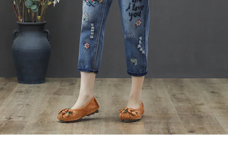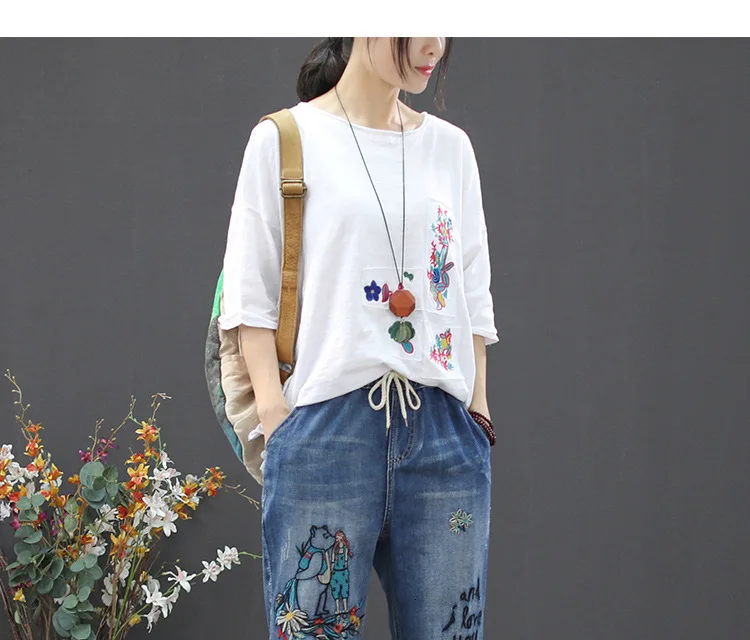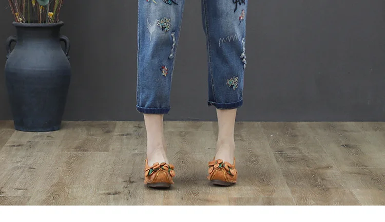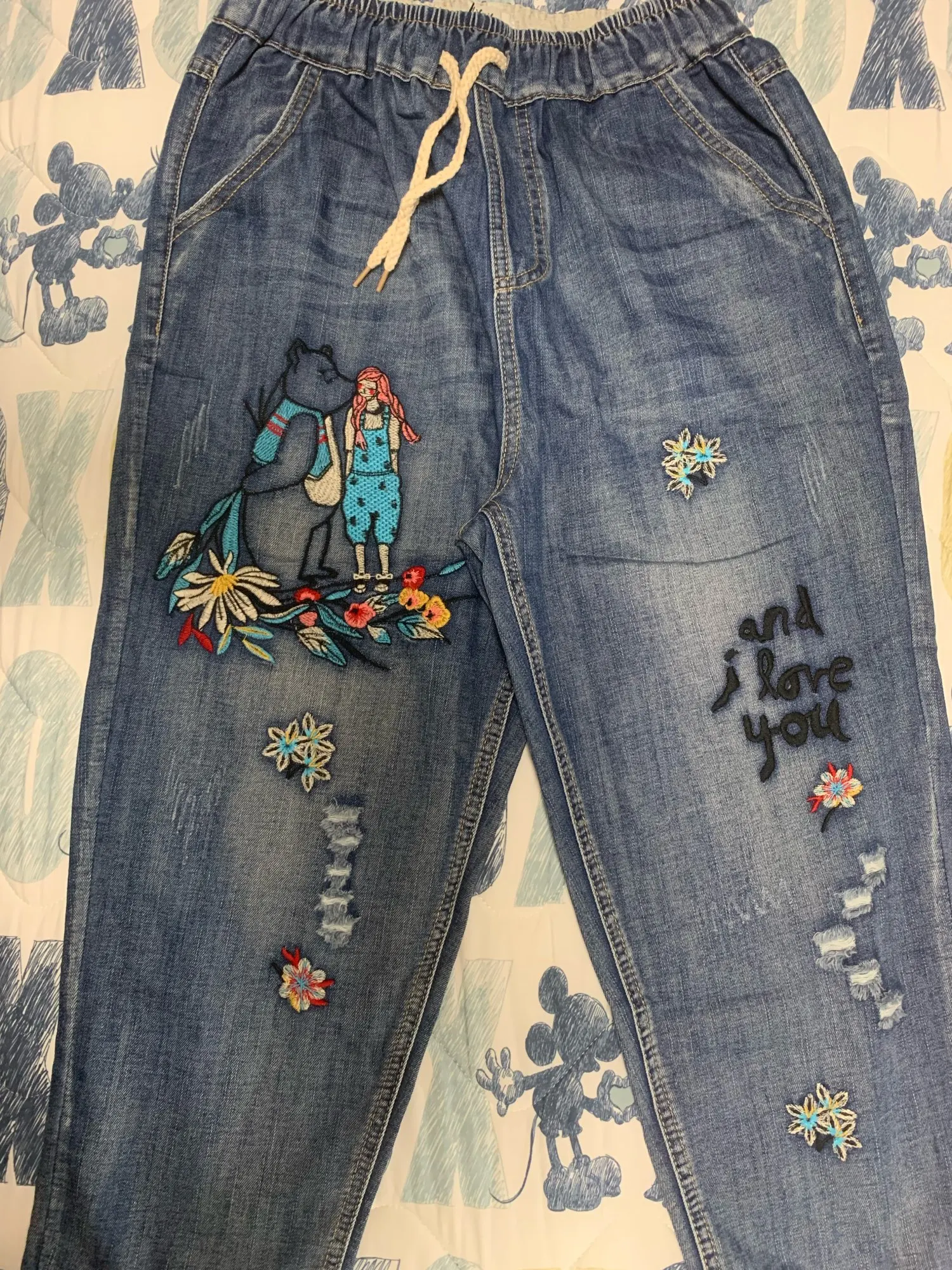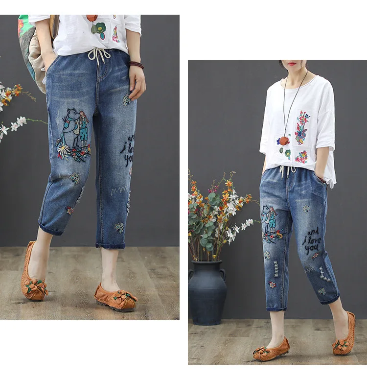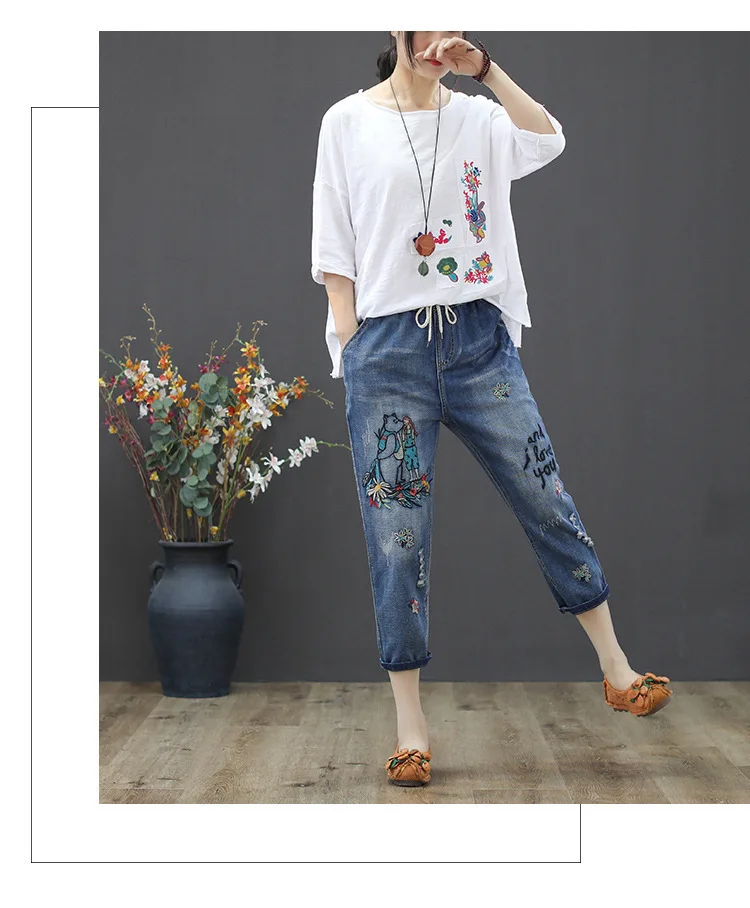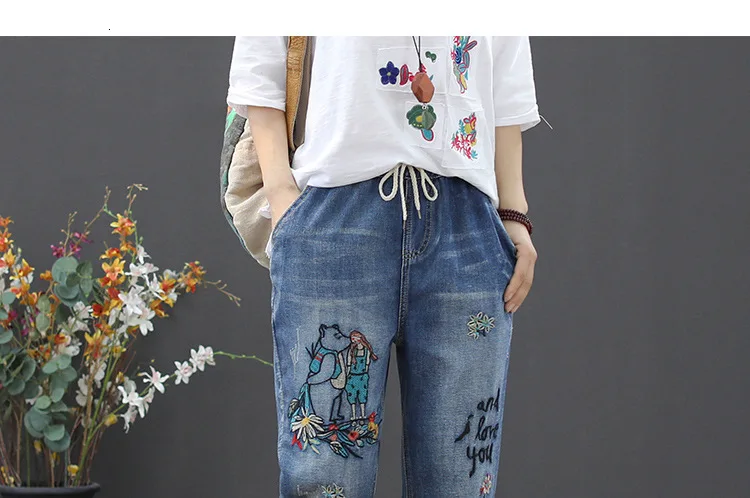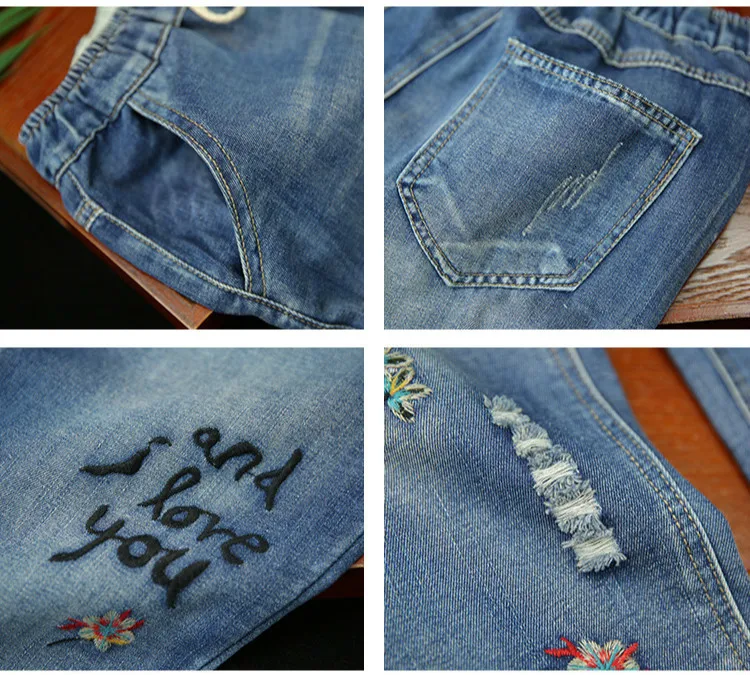 Корейские Модные Винтажные синие джинсы с вышивкой