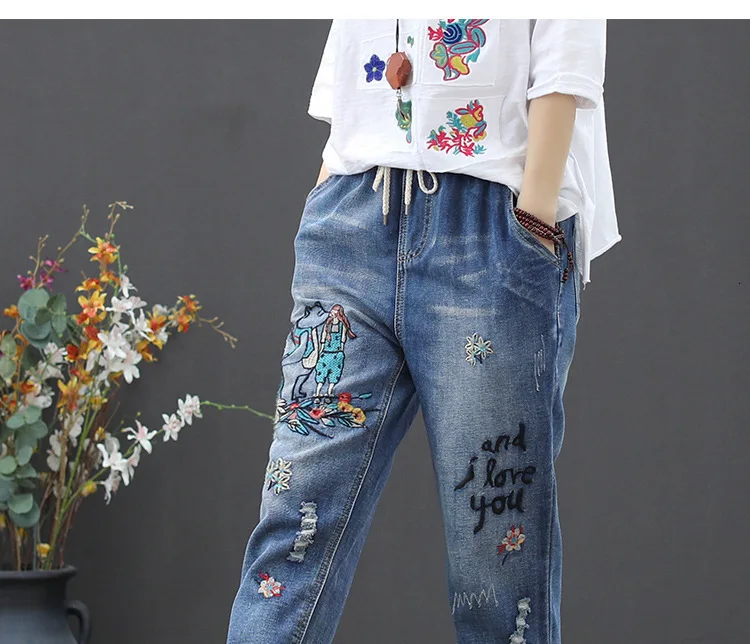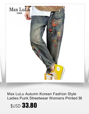 Женские брюки-султанки Max LuLu в Корейском стиле, синие джинсы с вышивкой, винтажные рваные брюки из денима в стиле панк, размера плюс XXXL