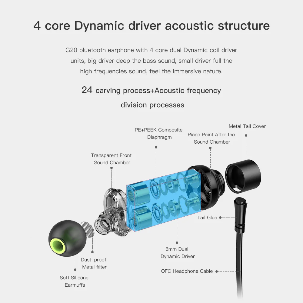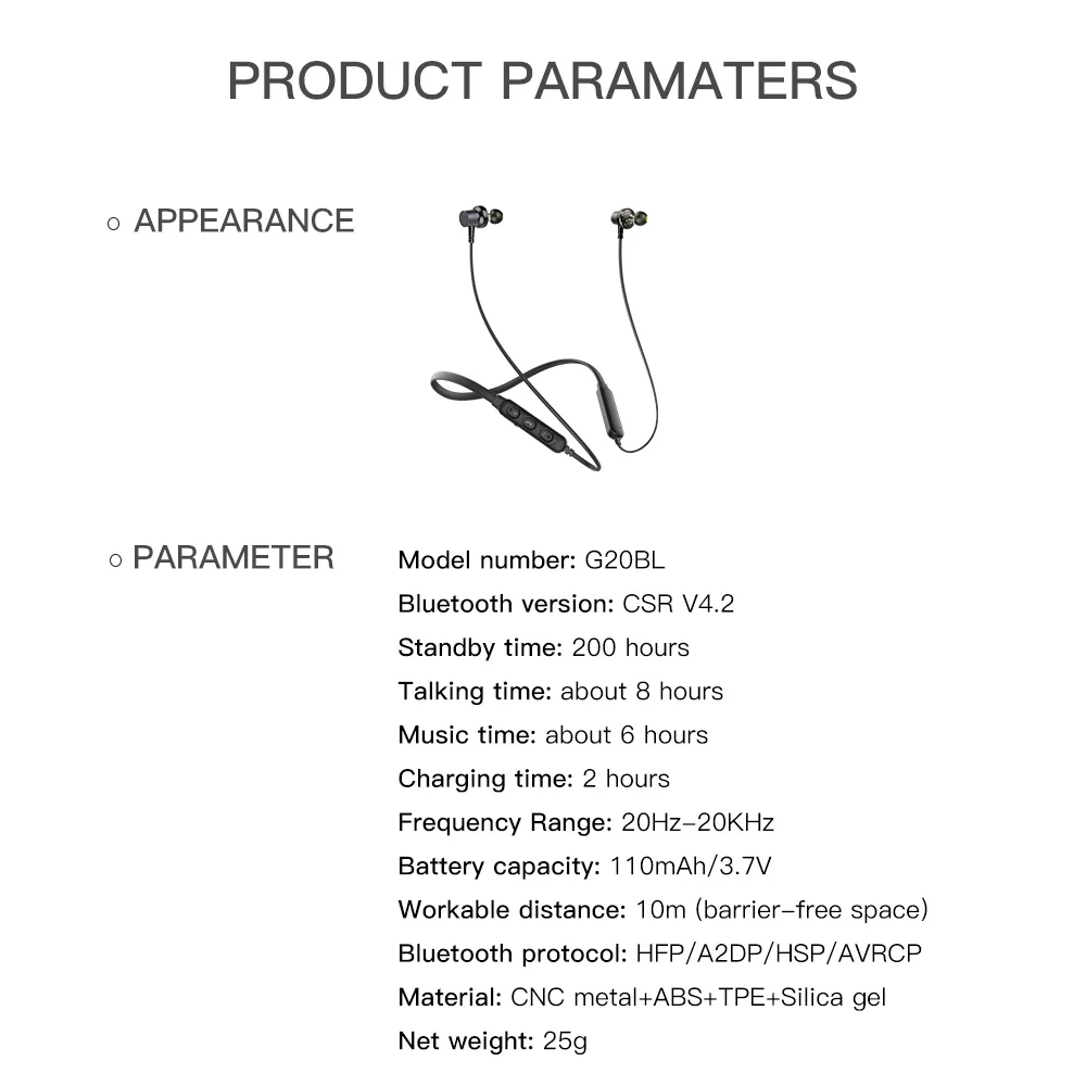 AWEI G20BLG30BL беспроводные bluetooth-наушники, наушники с микрофоном, двойной драйвер, шумоподавление, Спортивная гарнитура, бас
