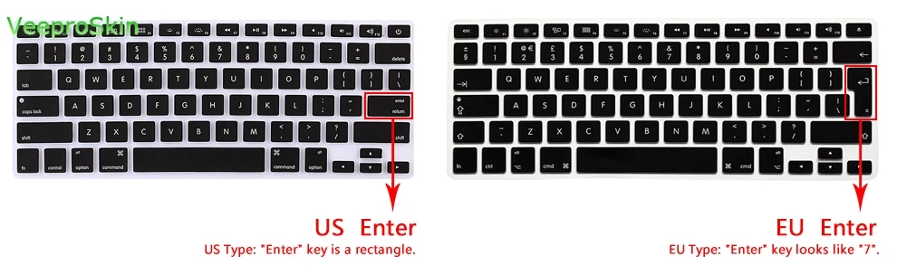 Эта крышка клавиатуры предназначена только для клавиатуры версии США (не для европейской версии), вы можете отличить: