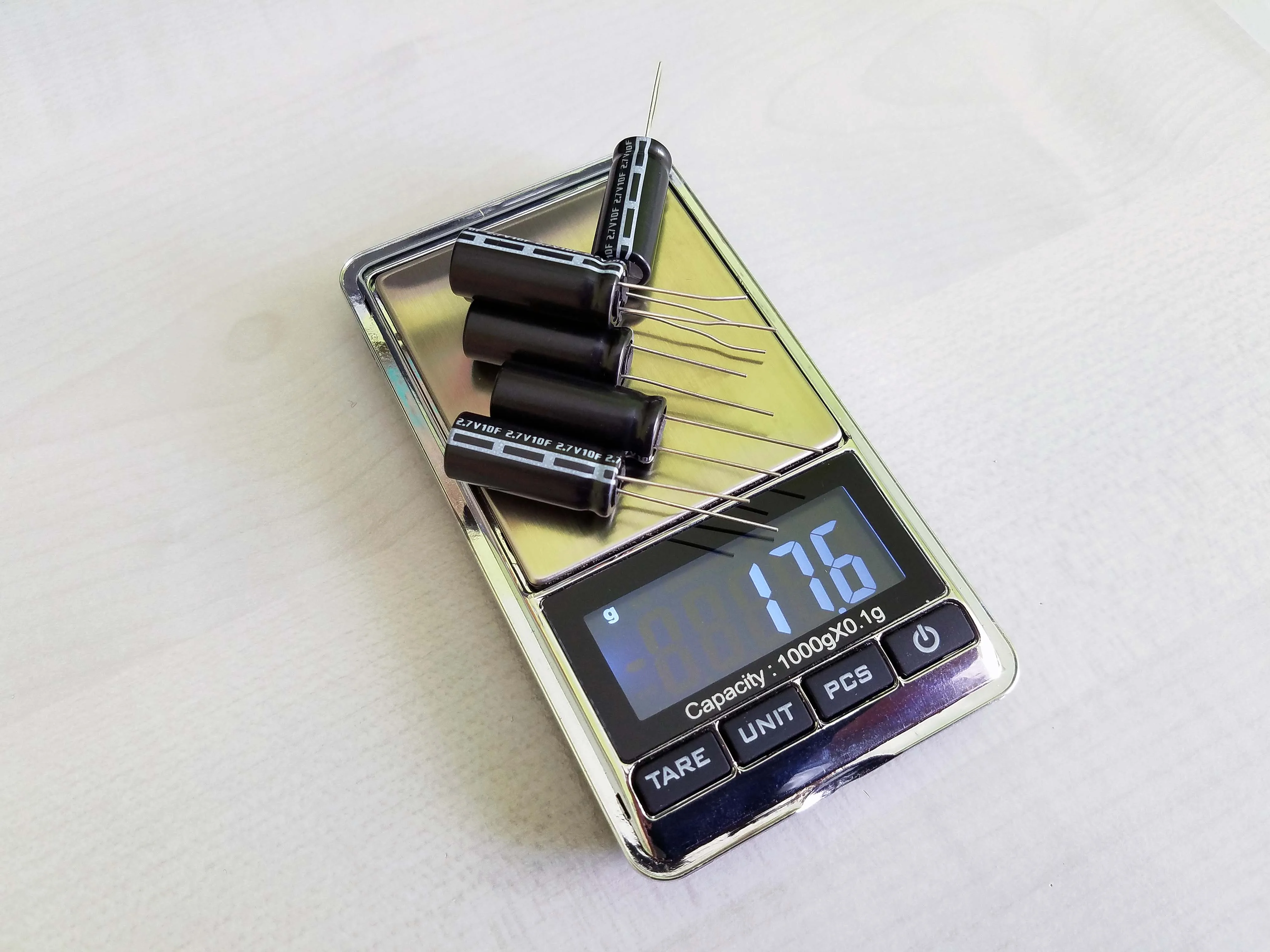 Вмещает 0,18 Вт · ч или 65 Дж при напряжении 2,7 В, поднимается до 5,5 В, но стабилизируется до 2,25 В после десяти часов, при непрерывной зарядке 8 Вт в течение трех минут он начинает выдуваться при температуре 108 ℃, верхняя часть открывается при 123 ℃, и пар вырывается в течение 1,5 минут, пока кислота не откидывается, безусловно, воняет. Очень безопасный конденсатор до 3,5 В, рекомендуется.