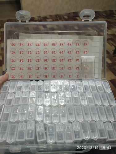 Заказывала 29.12.2020 получила 12.01.2021. Описанию соответствует. Бокс удобный, закрывается хорошо. Контейнеры похожи на коробочки от конфет "тик-так". Закрываются плотно, но не туго (чтобы открыть/закрыть усилий прилагать не надо). Брала, как начинающий заниматься алмазной вышивкой человек, бокс на 64 контейнера. Покупкой довольна. Продавцу спасибо большое. Рекомендую товар и продавца.
