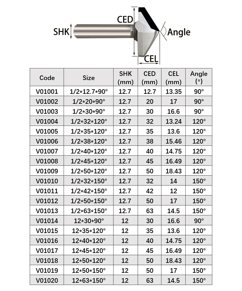 Vsharp, 1 шт., хвостовик 12 дюйма, Алмазное CVD покрытие, V-образная фреза для дерева, Концевая фреза, деревообрабатывающий резак, PCD фреза, Фрезы с ЧПУ