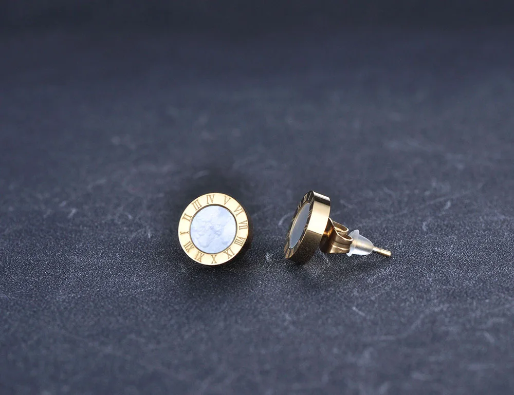 Женские классические серьги JeeMango, из титановой стали с римскими цифрами белого, черного цвета, серьги-гвоздики в виде ракушки, ювелирные изделия, JE18002