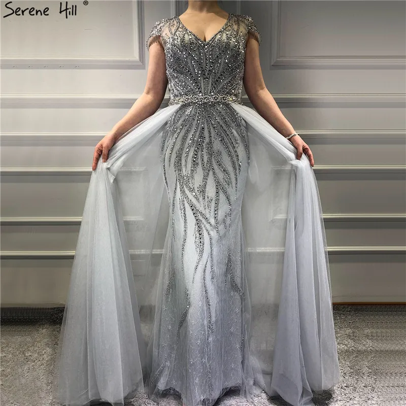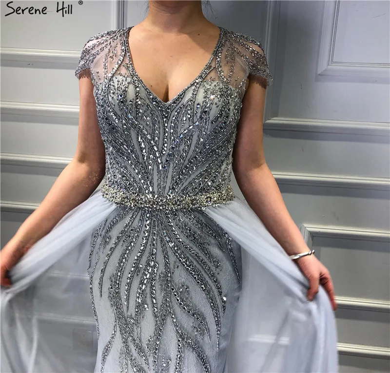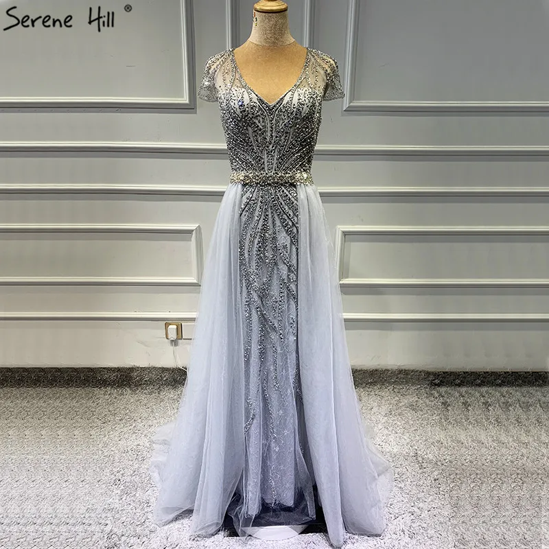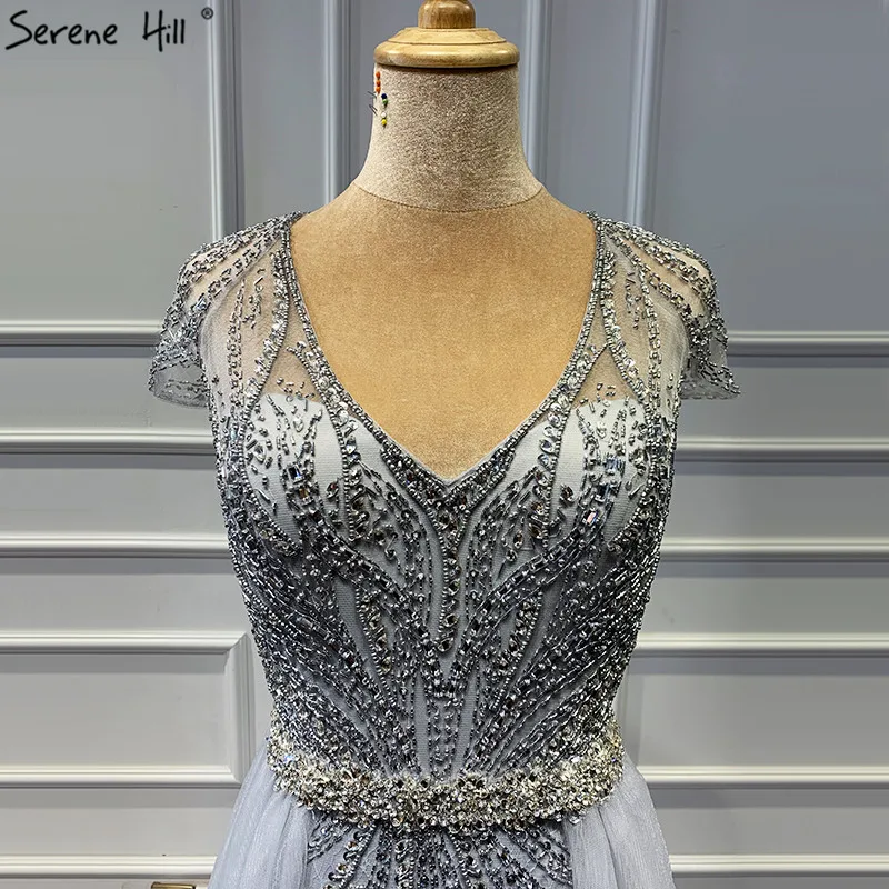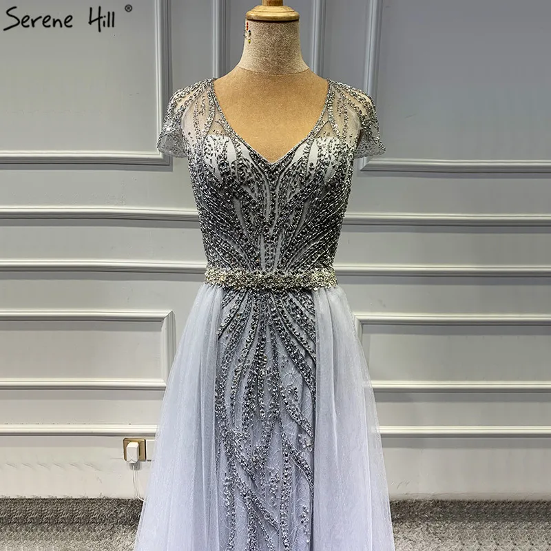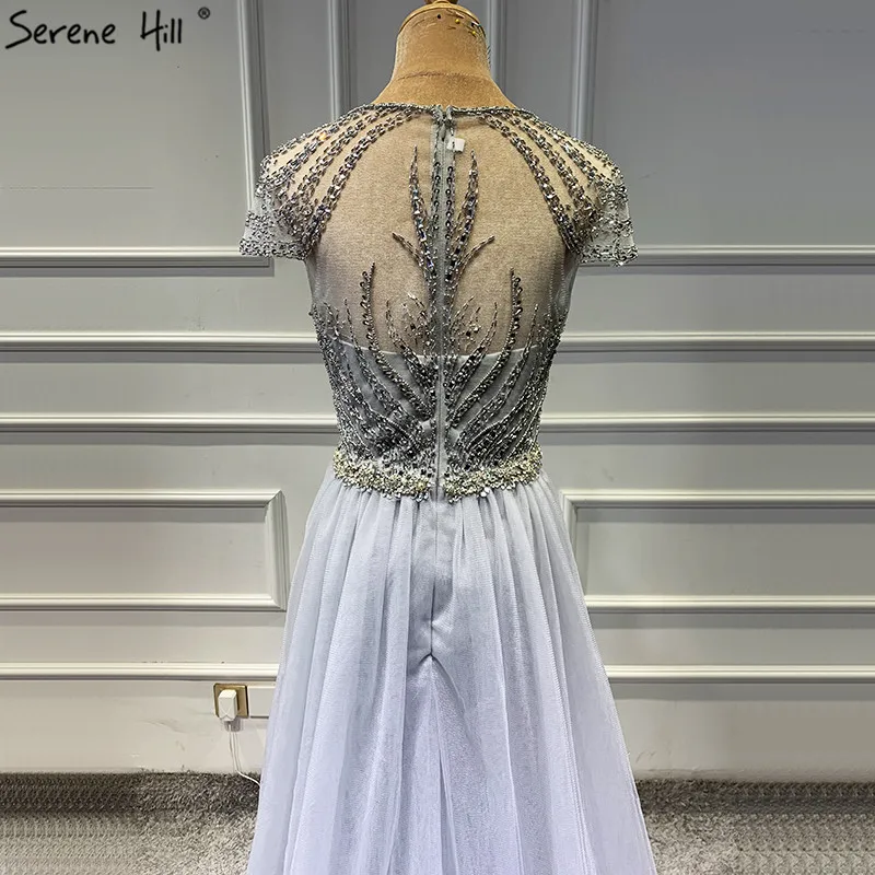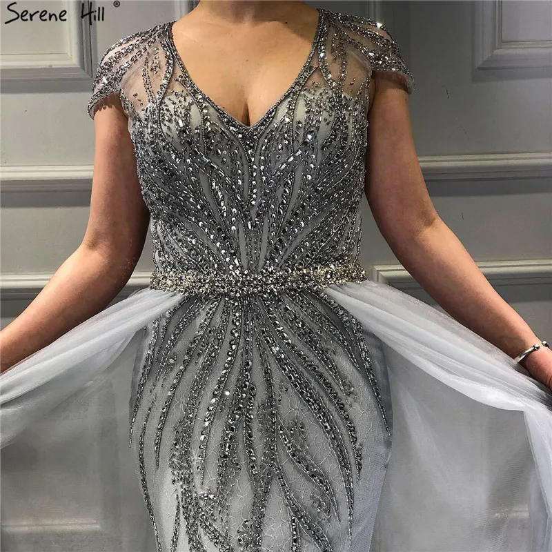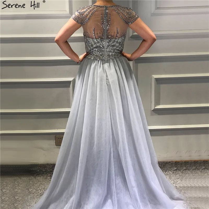 Дубай короткий рукав серые Сексуальные вечерние платья дизайн 2021 роскошное Бисероплетение блестками формальное платье Serene Hill LA70010