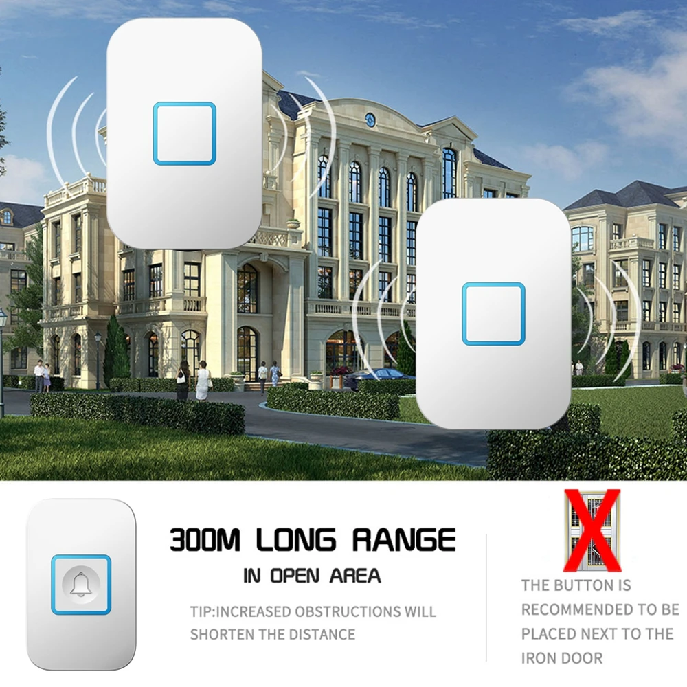 Беспроводной водонепроницаемый дверной звонок со штепсельной вилкой Стандарта США, ЕС, Великобритании светильник светодиодный дверной звонок с 60 громкостью, 5 режимов, 1, 2 кнопки, 123 приемника