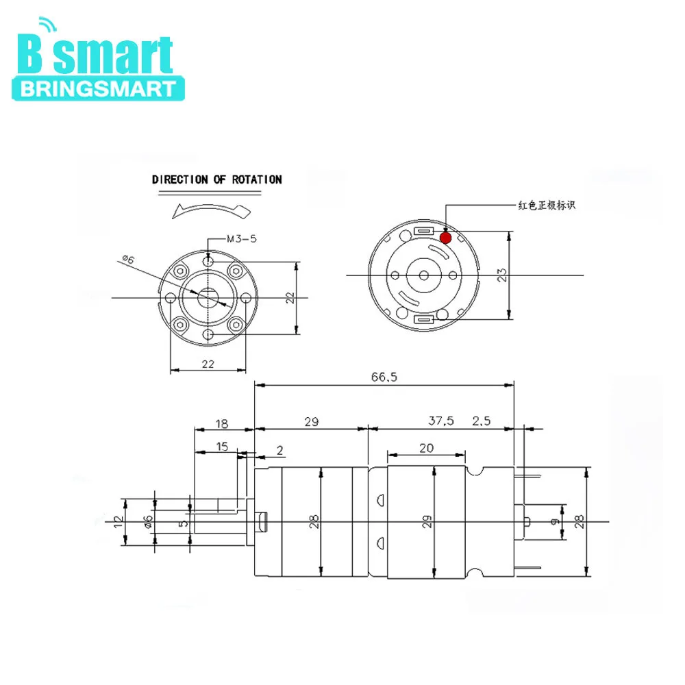 Компактный планетарный электродвигатель Bringsmart с редуктором постоянного тока, 320 обмин, 24 В, длительный срок службы, с обратным крутящим моментом, используется для игрушечного робота-двигателя сделай сам