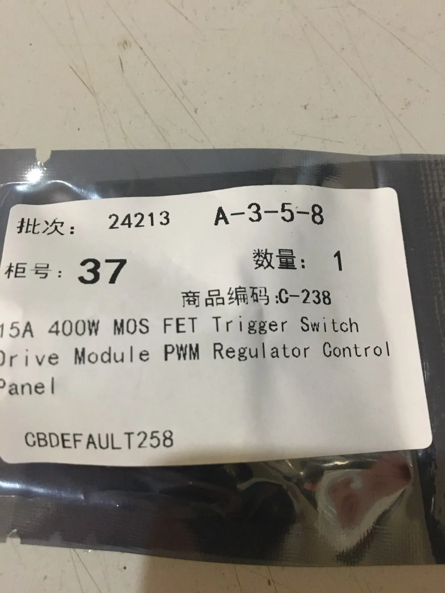 Я получил свой заказ, он был получен в Украину почти через 3 недели после оплаты. Высокое качество! Продавец очень дружелюбный, проводит разговор. 15A 400W MOS переключатель поля пускового механизма привод фото регулятор панель управления. Получил, но еще не подключен, качество на очень хорошем уровне. Очень хорошо Я очень доволен этим заказом и желаю продавцу богатства и процветания.
