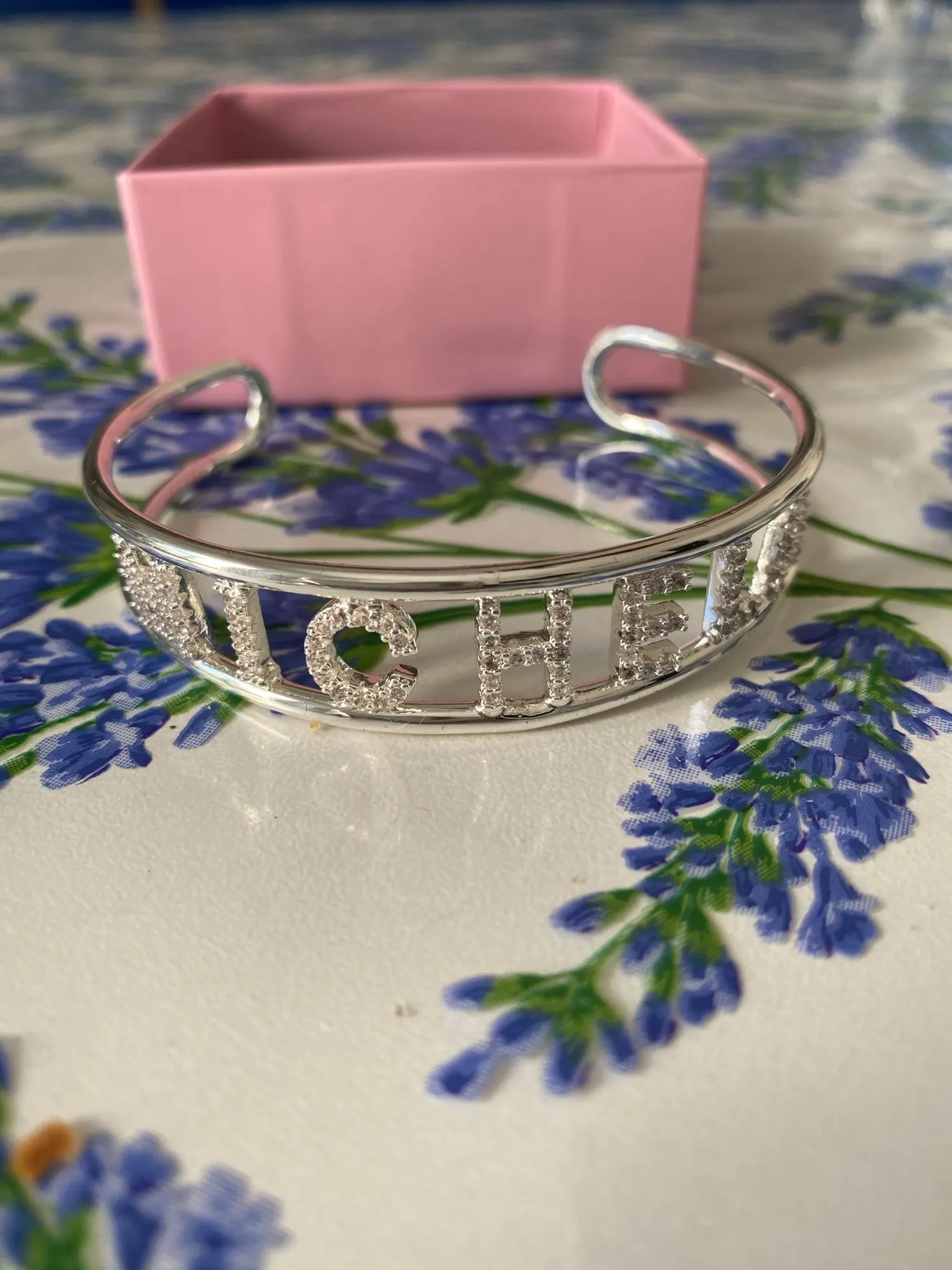 Идеально. Браслет с кубическим цирконием, красиво отделанный буквами, очень блестящий