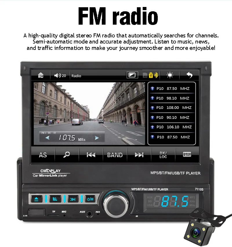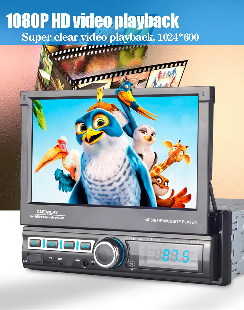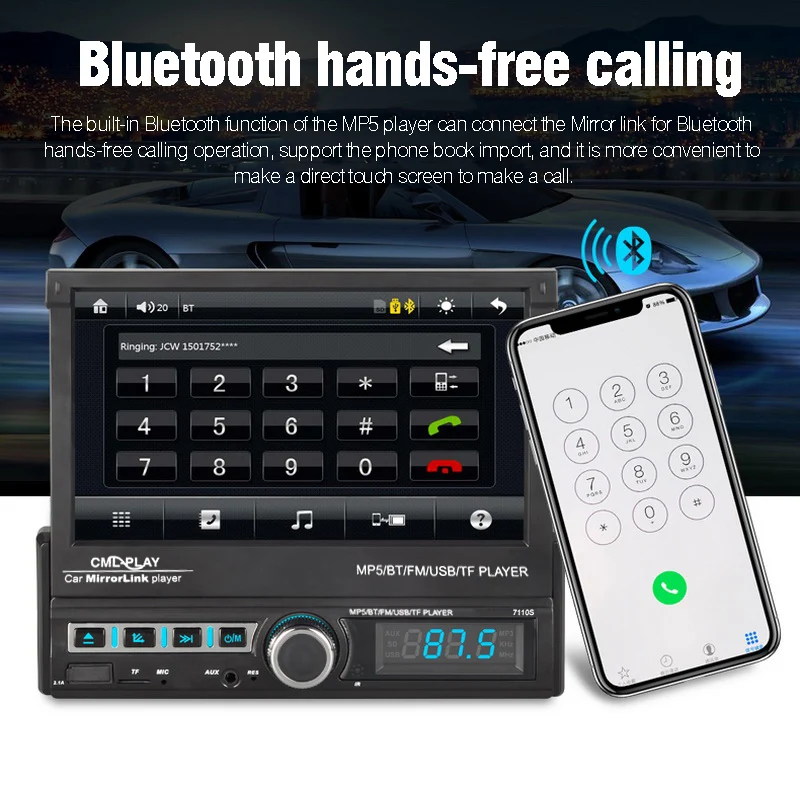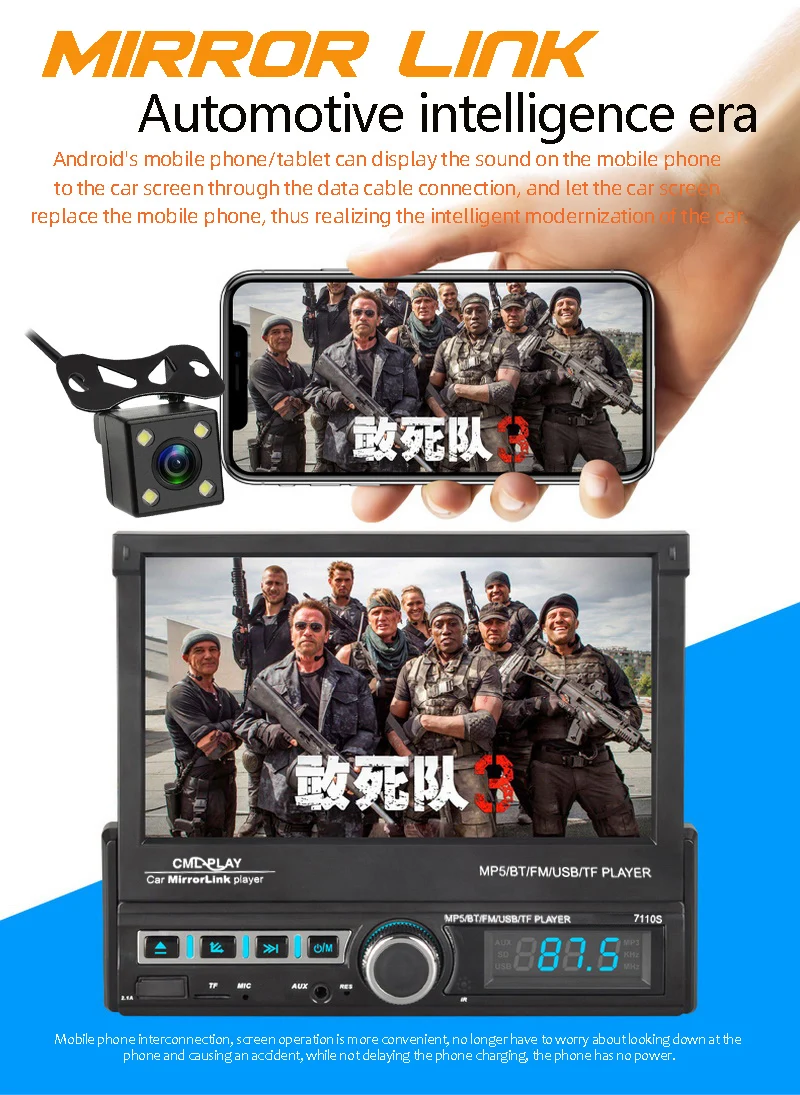 Автомобильный Выдвижной Автомобильный мультимедийный проигрыватель MP5 с 7-дюймовым дисплеем, поддержка Bluetooth, громкой связи, видеоплеер Mirrorlink для Android 9, USB