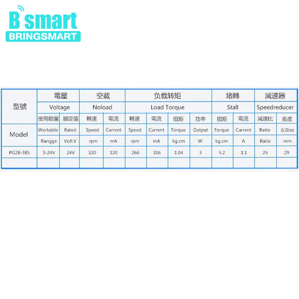 Микро планетарный редуктор Bringsmart 24 В с длительным сроком службы, двигатели постоянного тока, Реверсивный, низкоскоростной, 320 обмин, для игрушечного робота-электродвигателя сделай сам