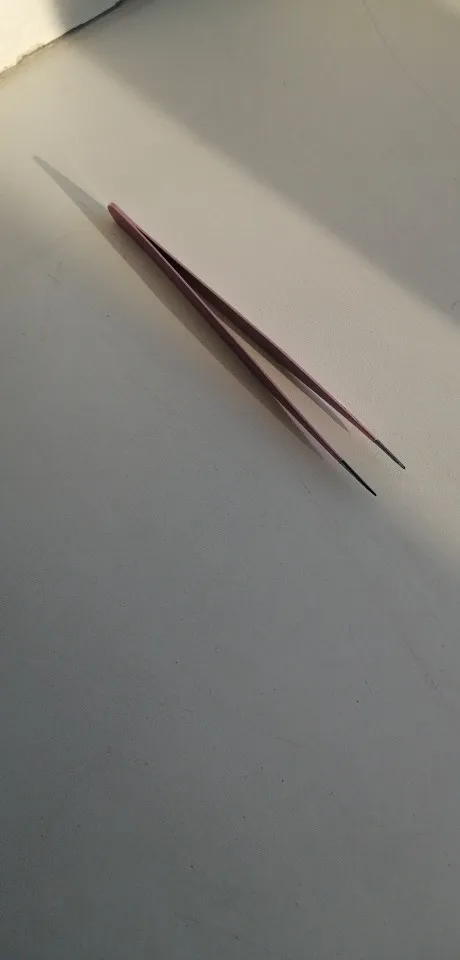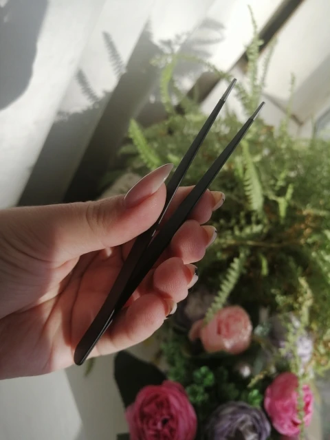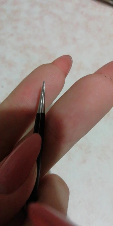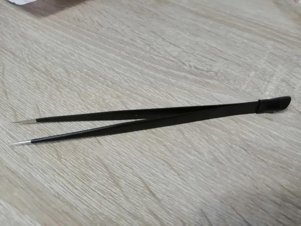 Посылка шла до Барнаула в Алтайском крае три недели. Пинцет ровный и острый, тонкий как в описании. Благодаря практичной длине удобно лежит в руке. Селиконовая накладка на конце мягкая и снимается что лично я для себя нахожу удобным. В работе пока не использовала, но предчувствие что не буду огорчена. Цена приятная по эьому рекомендую.