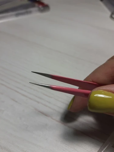 Отличный пинцет. Острый, качественный. Копытце отлично прижимает наклейку. Всё очень удобно