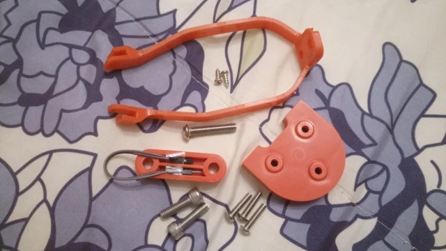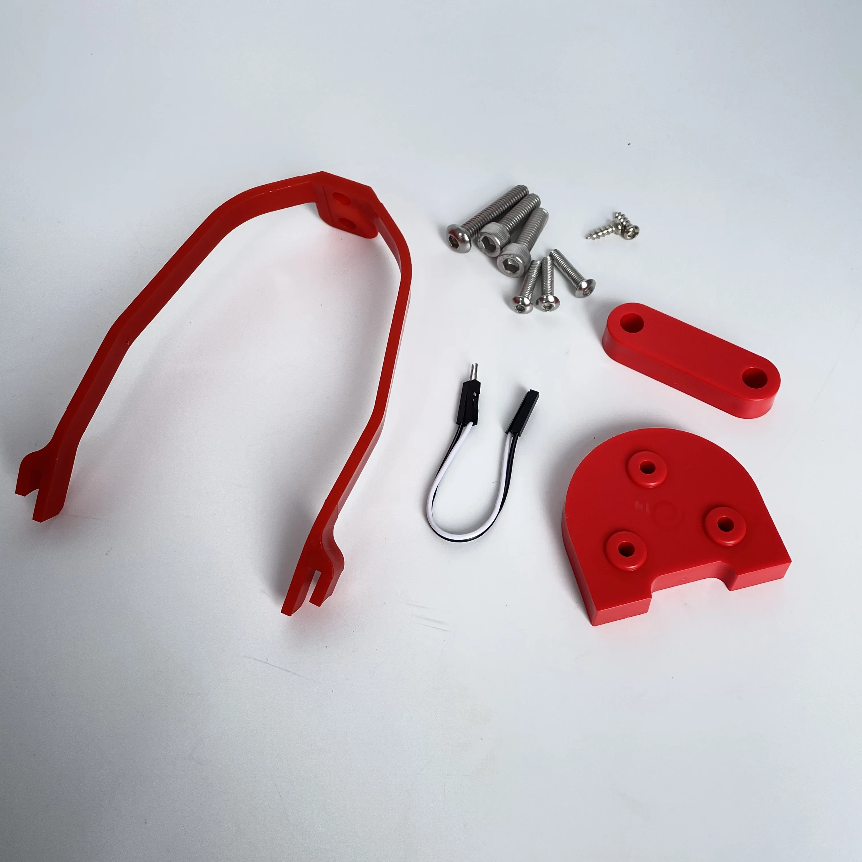 Опорный пластиковый кронштейн заднего крыла- это самая важная деталь данного набора. Кронштейн устанавливается вовнутрь крыла и закрепляется саморезами которые крепят защитную пластину заднего фонаря. Пластину нужно выбрасывать. Также не понимаю зачем в комплекте удлиняющий проводок, контактная группа стоп-сигнала выходит на несколько миллиметров из корпуса аккумуляторного отсека и защелкивается в оригинальный разъьём. Сложнее всего пришлось с подставкой под крыло на деке. Там три винта из комплекта нужно закрутить в красную пластиковую проставку. Отверстия в проставке пришлось немного рассверлить, а иначе винты в ней просто застревали и казалось что вот вот слижутся грани у шестигранной насадки. Короче ещё тот квест, не для новичков.