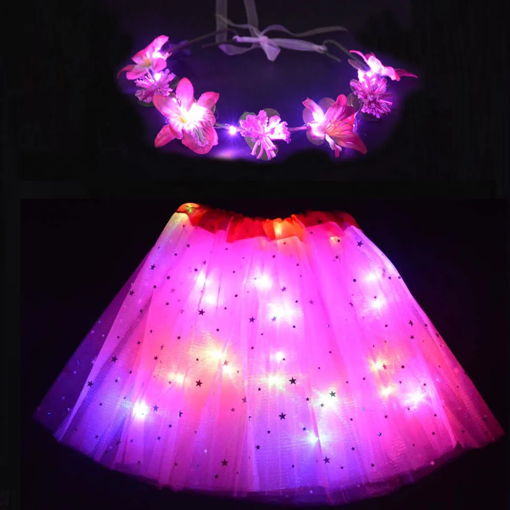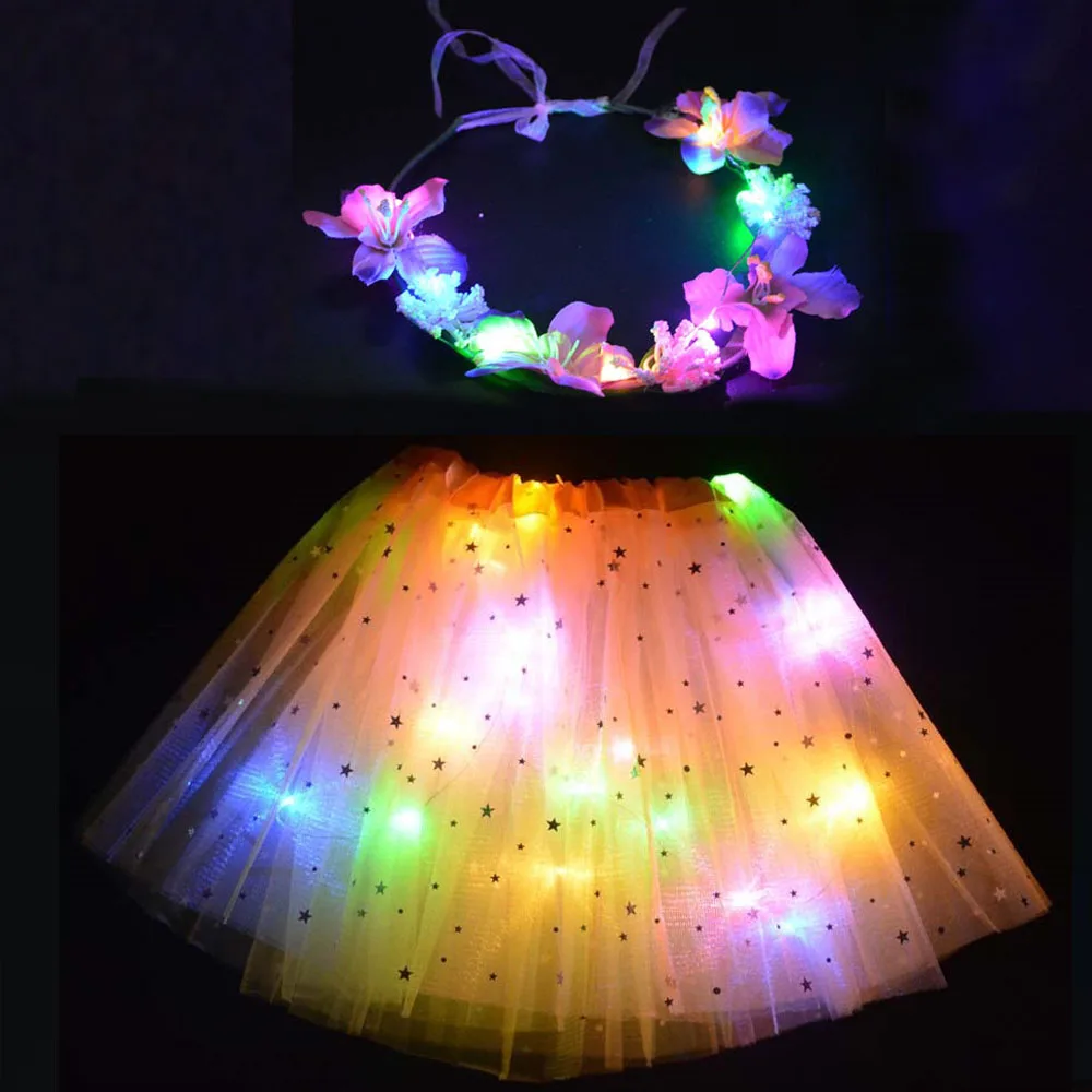 Женский костюм с светильник кой-пачкой и цветами, светящаяся повязк...