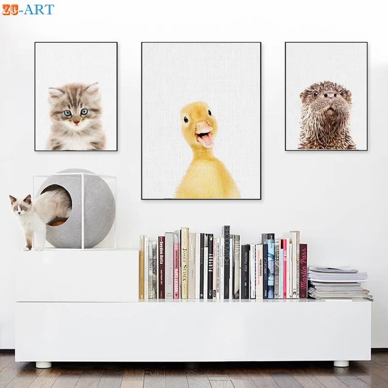 Кота выдра утенок плакат для детской животных Печать холст картины Детская комната украшения картинки котенок стены искусства подарка на празднование в честь будущего рождения ребенка