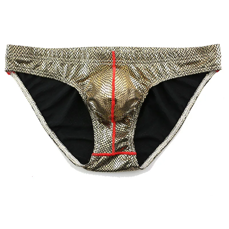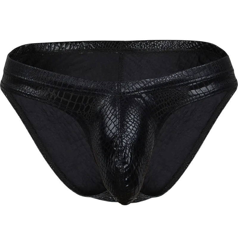 Мужские сексуальные яркие брифы из змеиной кожи с низкой талией для мужчин мужское нижнее белье для геев мужские трусы s сексуальное мужское нижнее белье s большой карман для пениса