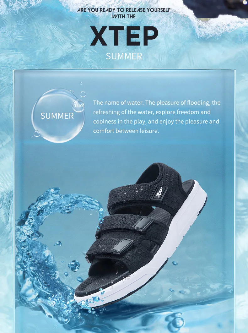 Сандалии Xtep мужские для пляжа, удобная повседневная спортивная обувь, уличные шлепанцы, весна-лето 982219171533