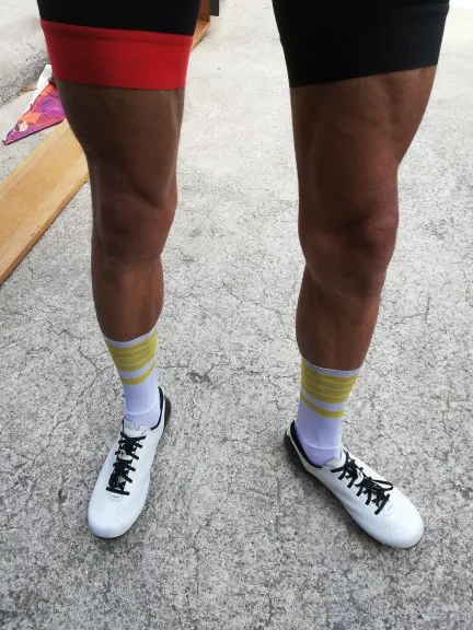 Лайкра трость велосипедные носки с силиконовой лентой для лучшего удержания, хорошее качество, супер удобные, они тянут долго, потому что я заказал S для размера 42 и у меня все отлично. Частично говоря о получении заказа, через 14 дней я получил их у себя дома, у крупного продавца и очень хорошего общения. Я куплю больше!