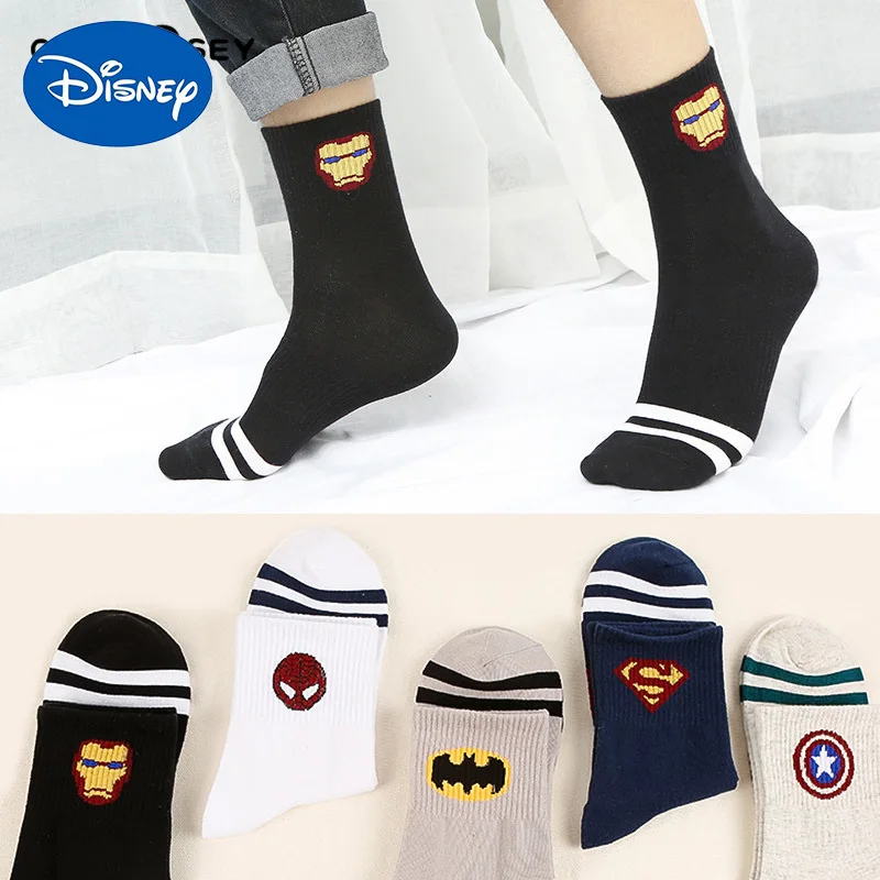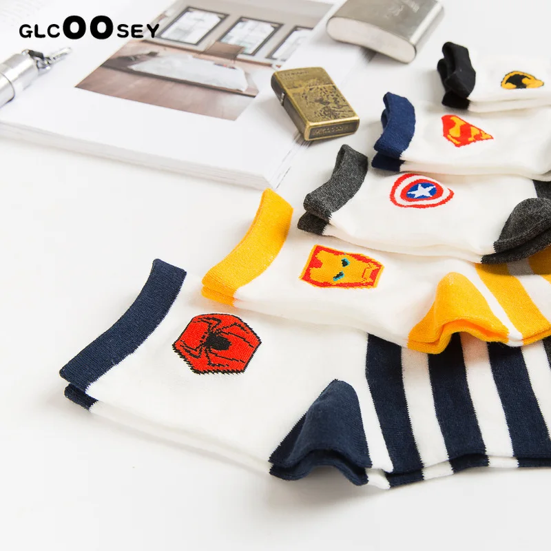 Носки Marval мужские с героями комиксов, повседневные высокотемпературные носки с прострочкой, с мультяшным принтом Железного человека, Капитана Америка