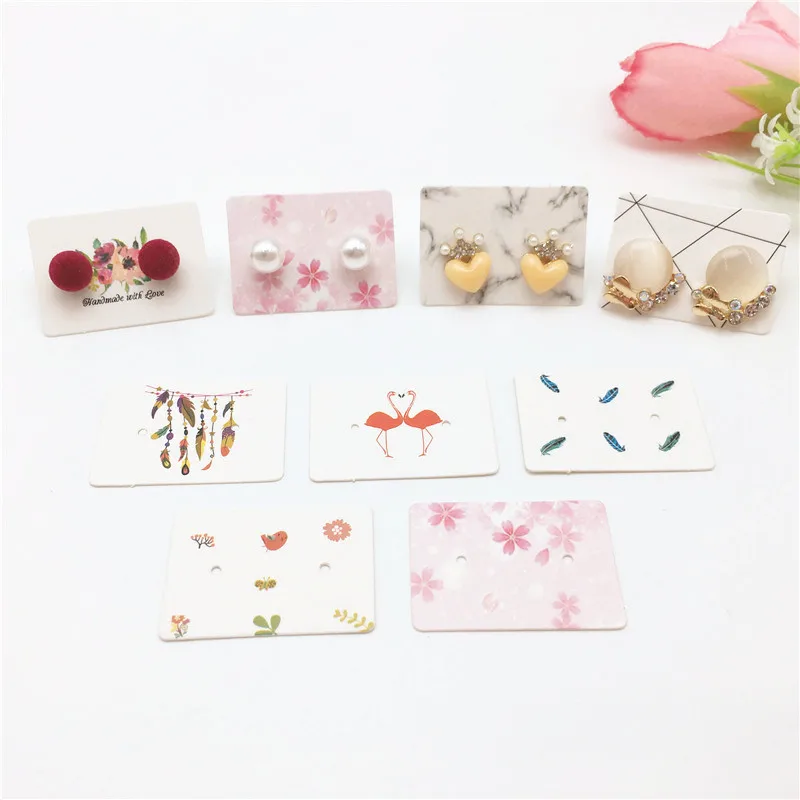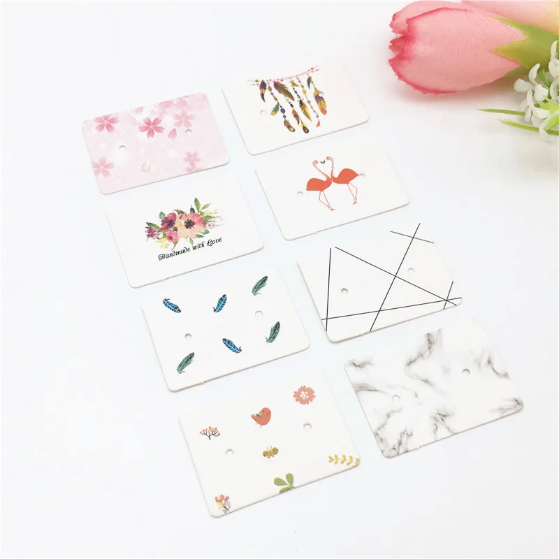 Оптовая продажа 200 шт. 3,5x2,5 см простая мраморная ветрозащитная упаковка для сережек-гвоздиков подвесная бирка с 2 отверстиями, цветная печатная витрина для ювелирных изделий