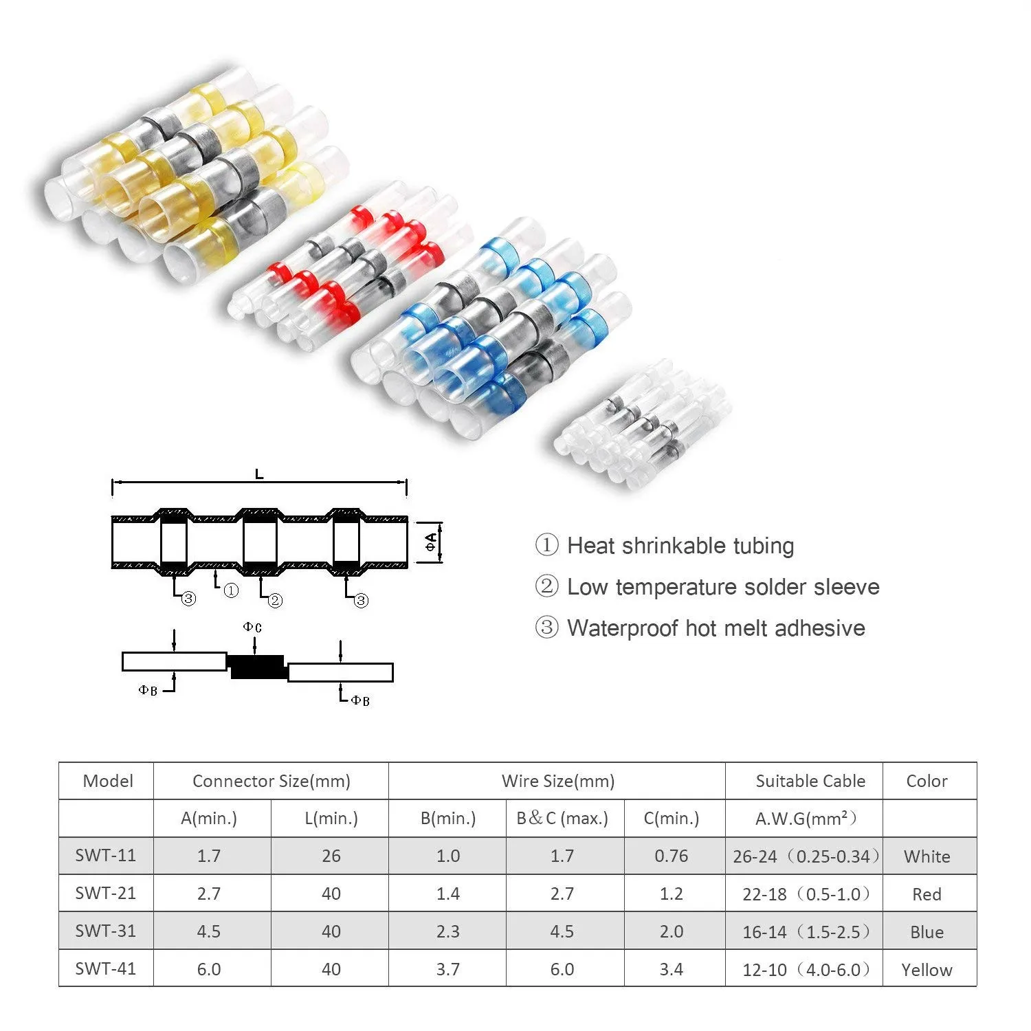 204050 шт водонепроницаемые соединительные муфты для припоя термоусадочные электрические проволочные стыковые соединители набор ассортимент 10-26AWG